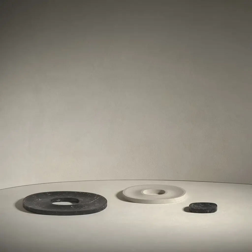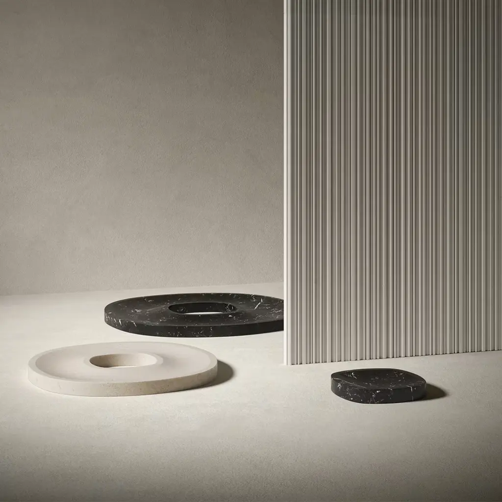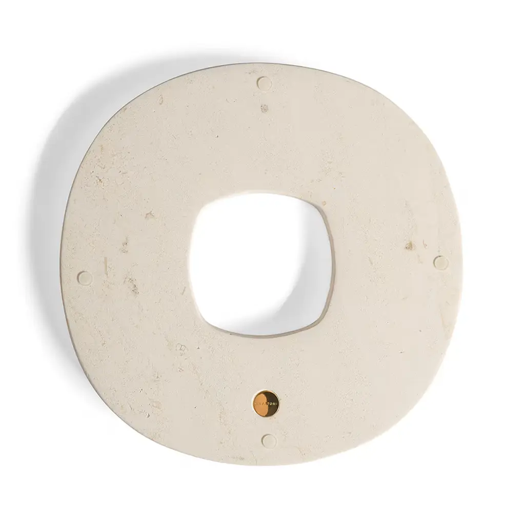 Harmonious and welcoming, the ring-like design (Ø 30cm) of this tray makes it an elegant and artful solution for collecting fruit or serving canapés on special occasions. Its silhouette is crafted of Crema d'Orcia, a bright, cream-toned limestone characterized by delicate veins that unpredictably vary from piece to piece. A larger variant in black Marquina marble is also available, please check the Artemest catalog.