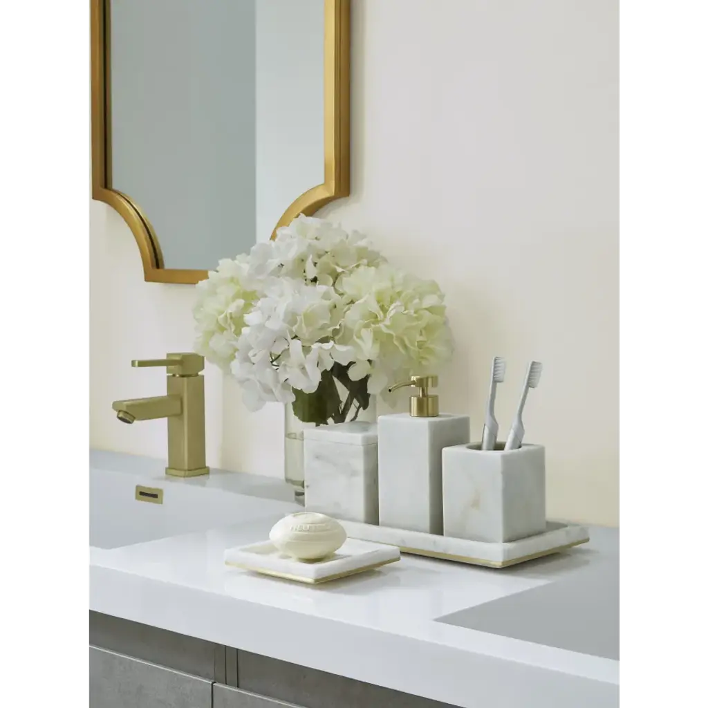 Pietra Marble Storage Tray 12 X 6 X 1 White/gold