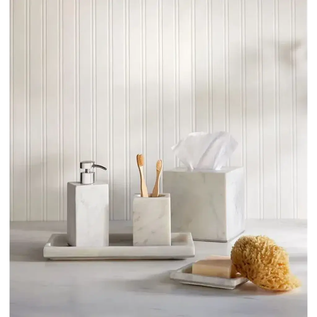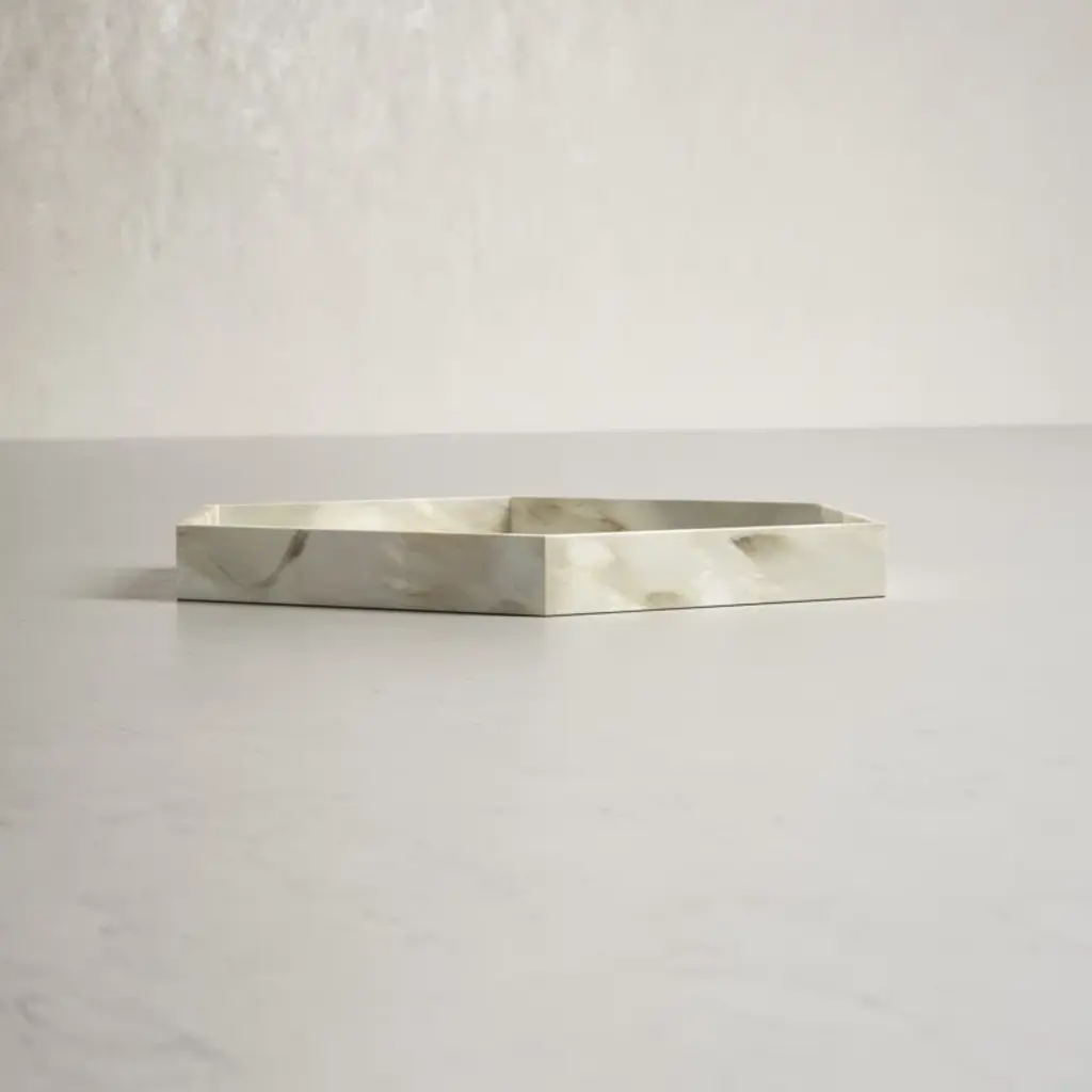 Pietra Marble Storage Tray 12 X 6 X 1 White/silver