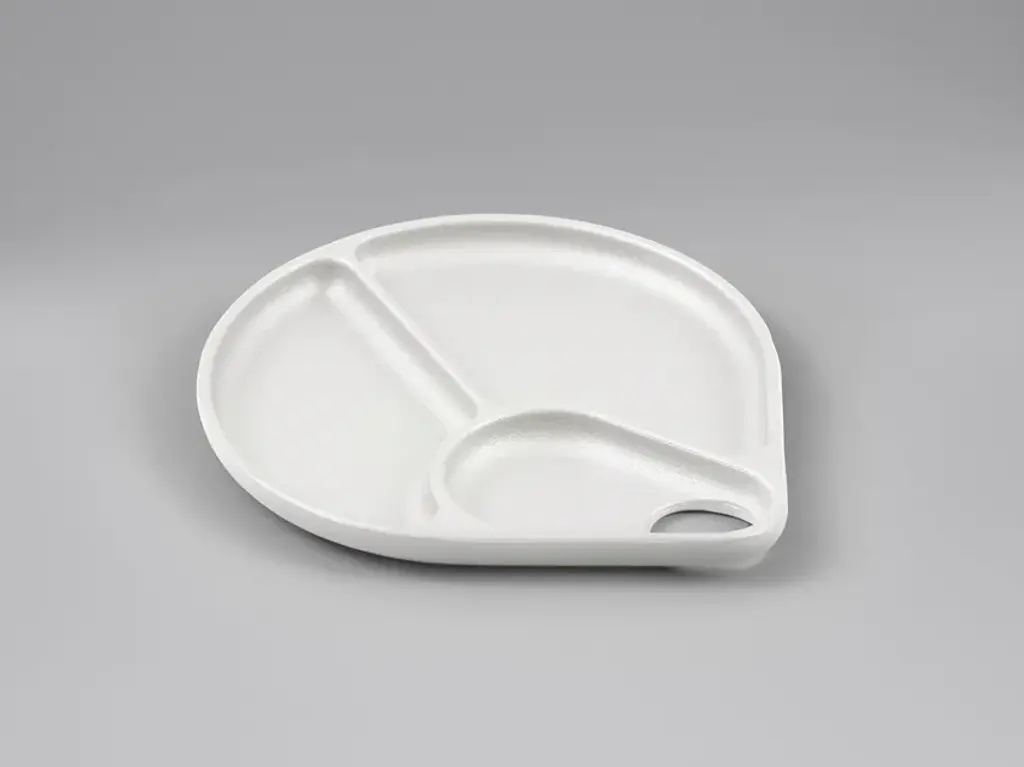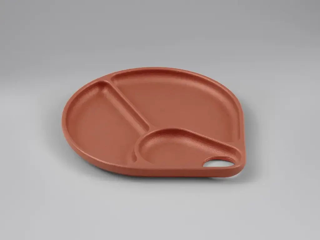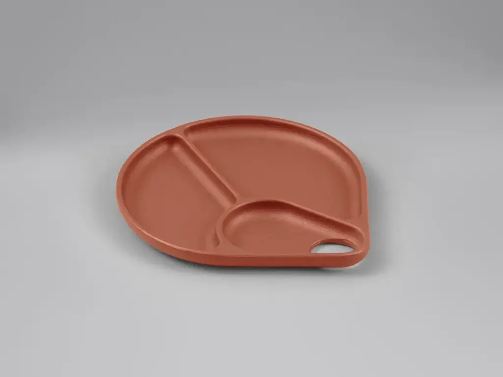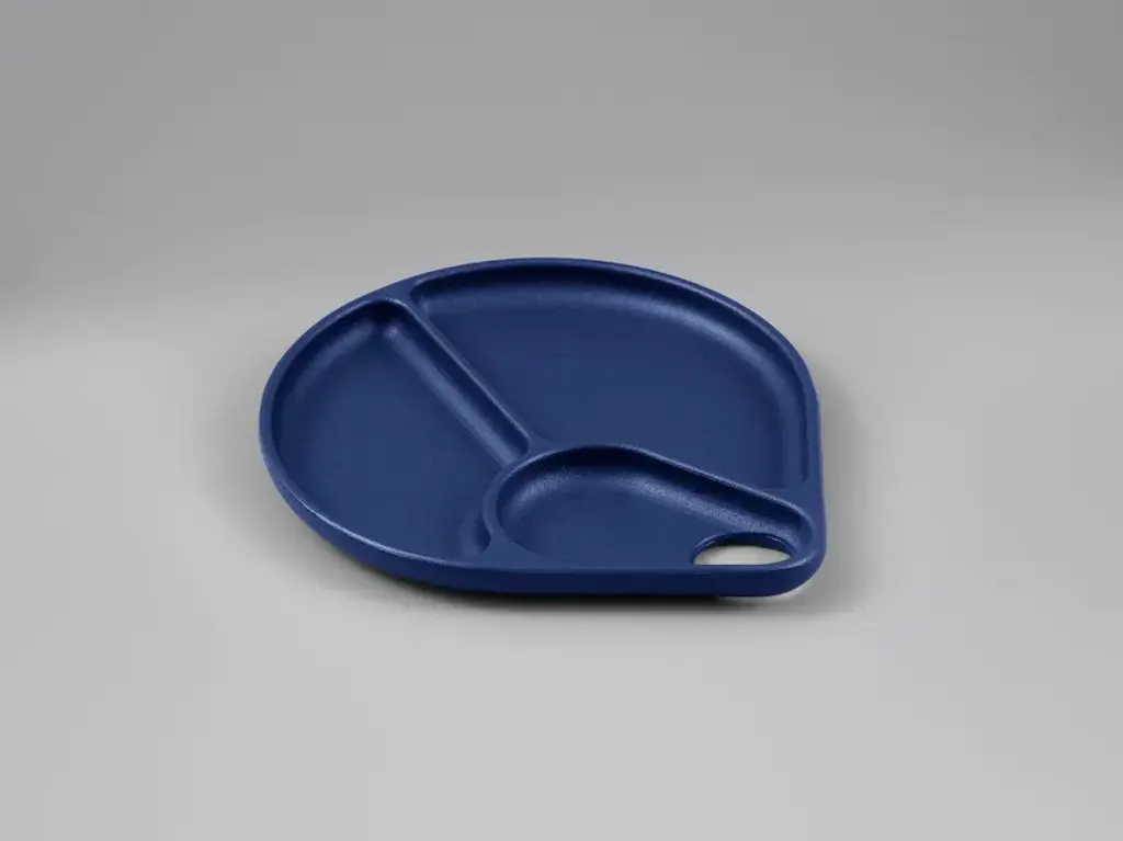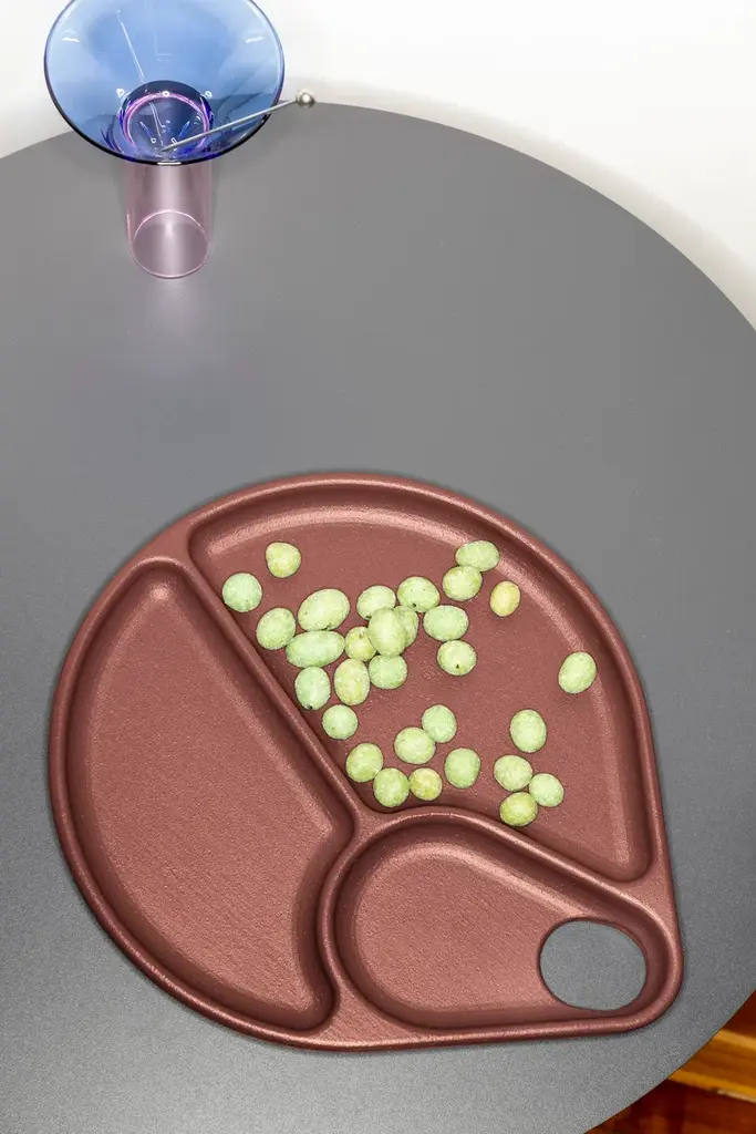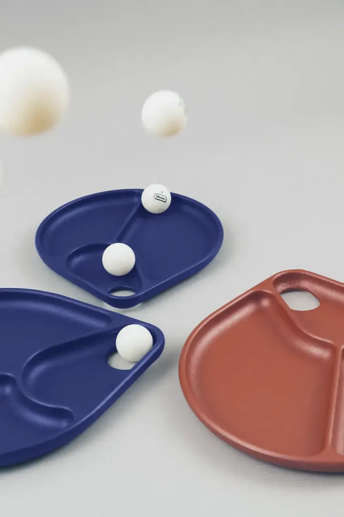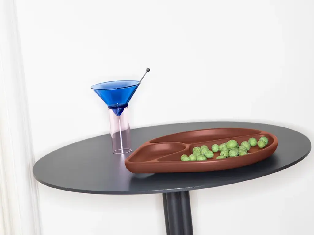 Designed by Vico Magistretti in 1986 for his London-based friend John Cook, Ping Pong is an object holder/party tray. Created as part of a tableware collection by Italian design masters, it was presented at Milan’s 2015 Expo.The cast aluminium re-edition, available in two sizes, with a perimeter shaped like a table tennis bat, is characterised by 3 compartments of different shapes and sizes, with a practical hole at the converging point that makes it easier to grip.