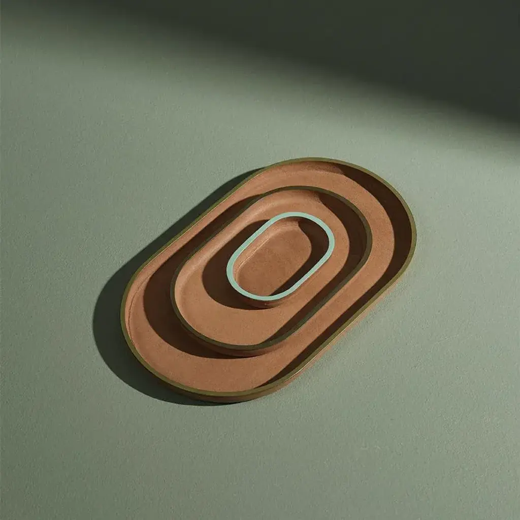 Plato trays are designed for organizing everyday objects with serenity, sophistication and bliss. Plato defines a subtle limit with no limits, organizing the infinite options of daily life. While blending in with its surroundings and becoming almost invisible, Plato is there to make a peaceful statement by reducing clutter. Enriching life at home and in the office, Plato can be used anywhere. Oval trio is a set of three pieces: oval no:1, oval no:2, oval no:3. Offered also with special edition multi-colored edges. Labeled by Maker