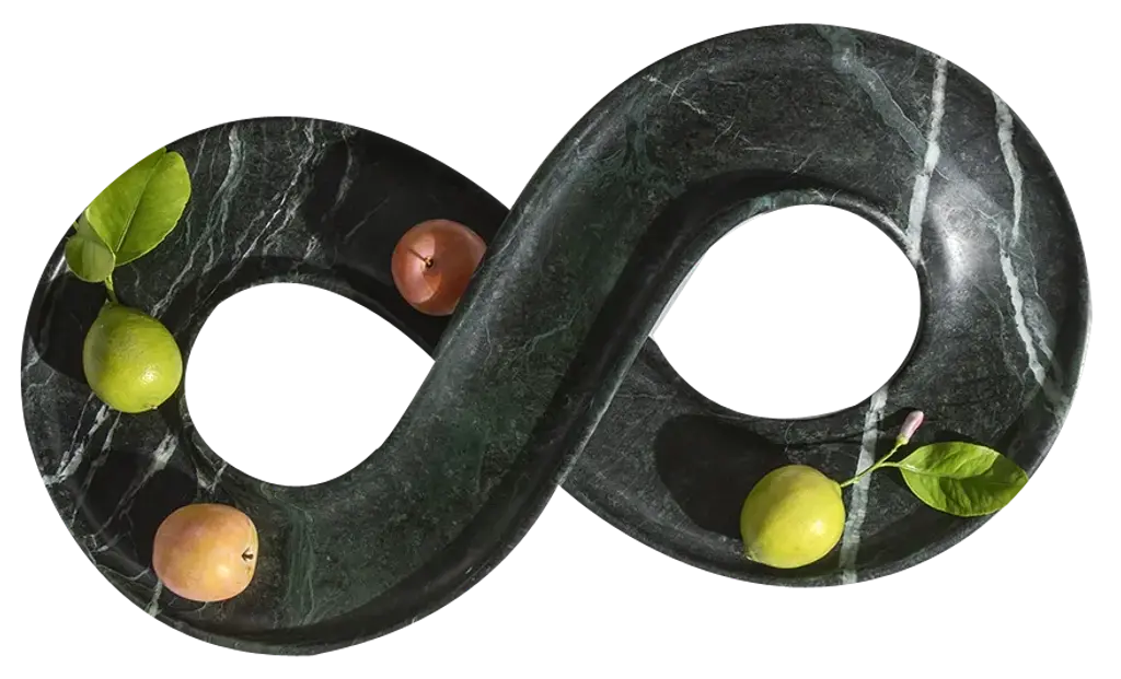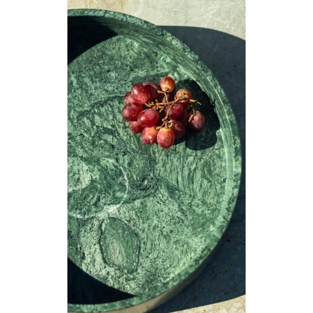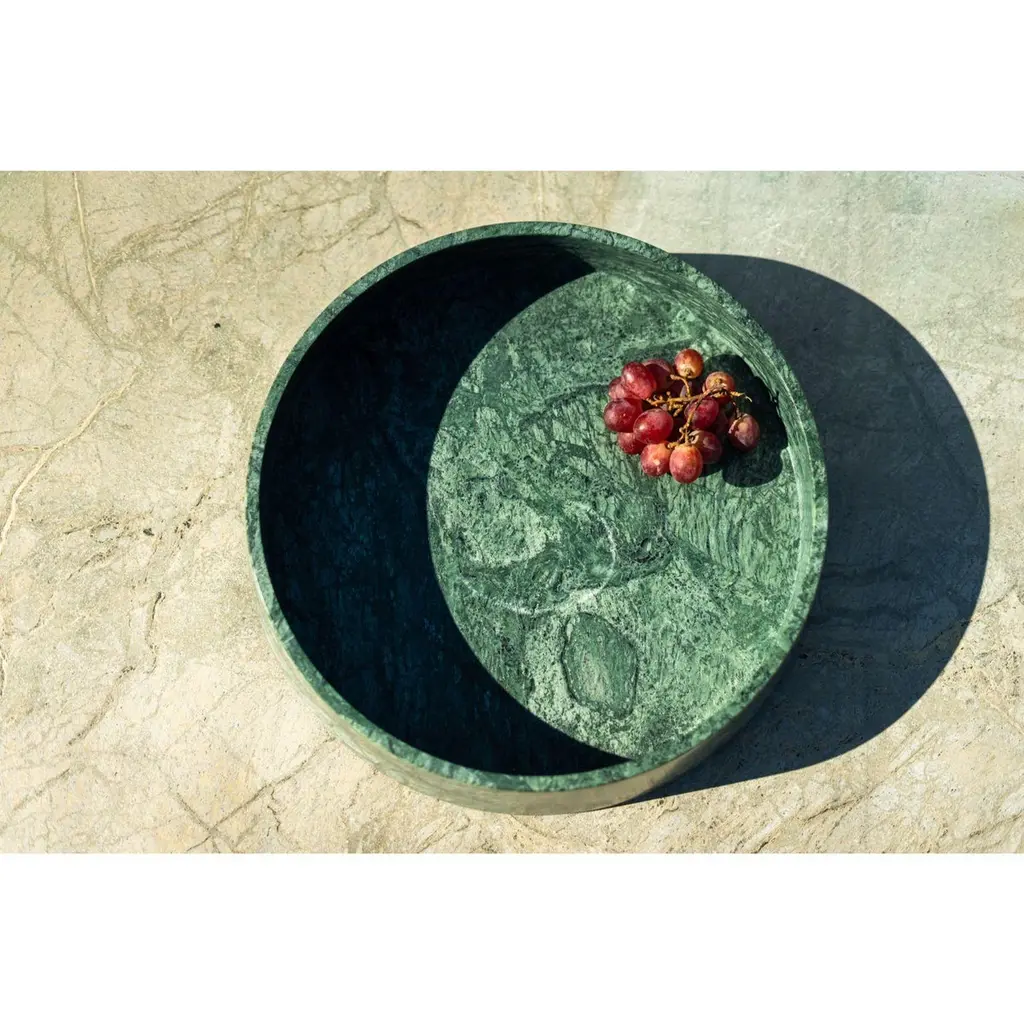 Plumb marble tray - Small by EssenziaMaterials: India greenDimensions: 30 x 30 cmAlso available: Pele de tigre, estremoz white, carrara, rosa portugalSimple and functional object with a timeless elegance that can be used to place fruit or as a simple decorative piece. It will be prominent element that will grab the attention in the center of a table or sideboard. Available in large and small size.Essenzia it’s a brand focused on contemporary design in the context of stone, which aims to offer a new vision for the use of marble, carefully selected from early stage in the quarries, to create exclusive products for daily life. Combining tradition and innovation, each product it’s processed by high tech machinery and finished by our highly skilled team of specialized artisans. These dialogues result in high-end products with refined finishing touches that emphasise the features of the stone, that make each product unique.