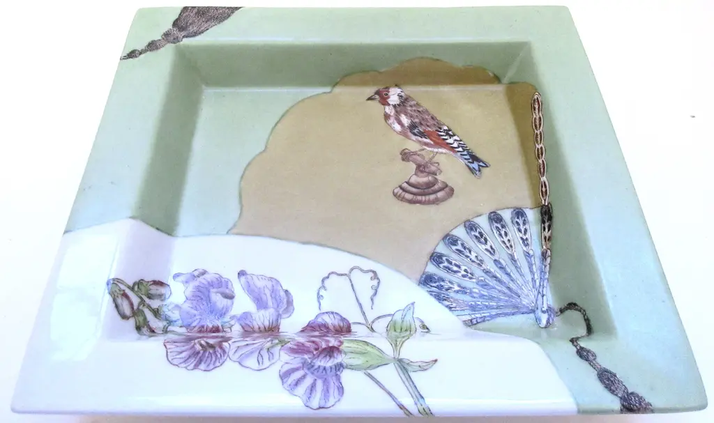 Porcelain Bird And Fan Tray
