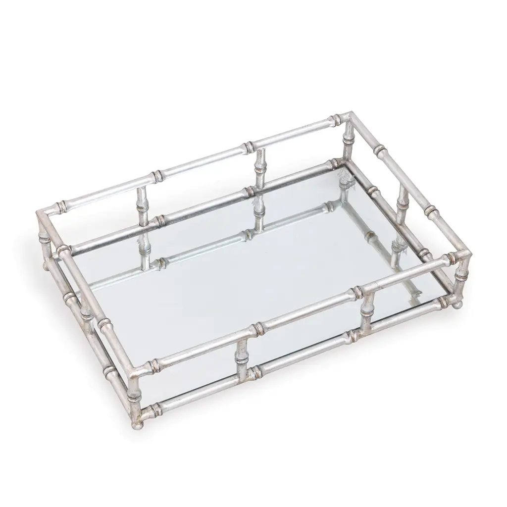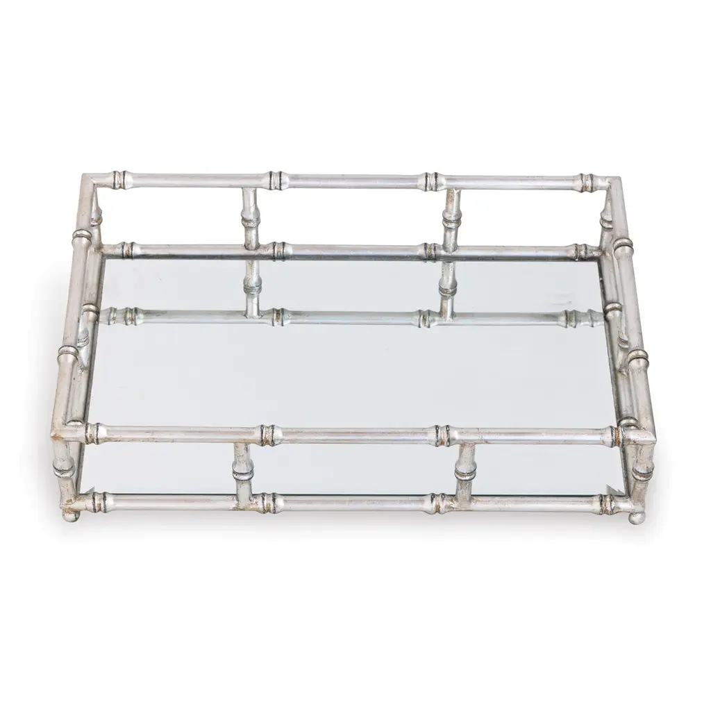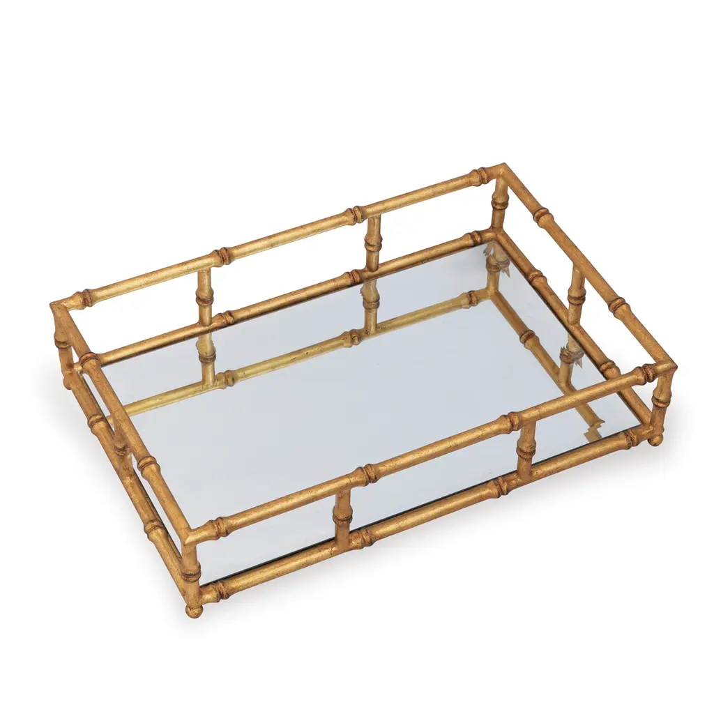 We love bamboo! Port 68's Doheny tray is a nod to classic Palm Beach style. A glamorous addition to the vanity, bar, or coffee table, this tray is crafted of steel to resemble bamboo with a hand-burnished gold-leaf finish and a beveled mirror base.