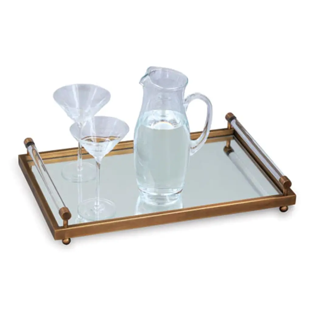 Designed in the art deco style, Port 68's Moderne tray features solid crystal handles and a polished nickel or antique brass metal frame. Mirror top.