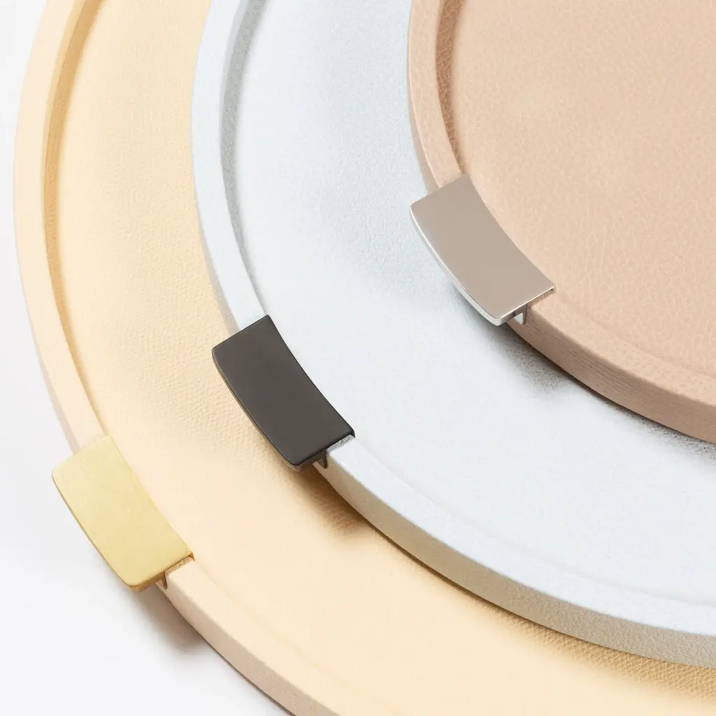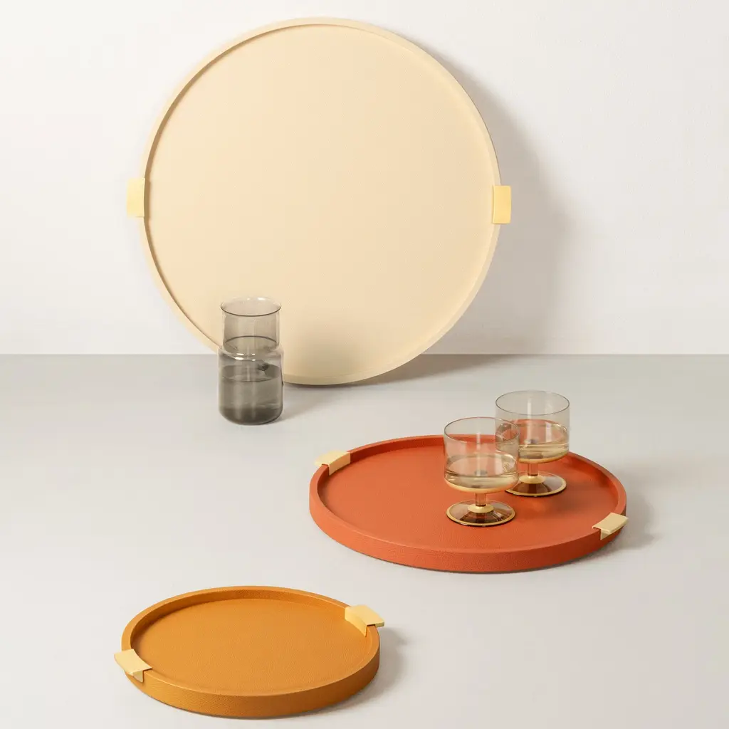 Embodying the timeless elegance of its operatic namesake, the Puccini Round Tray from Giobagnara is a sophisticated centerpiece for modern entertaining. Expertly handcrafted in Italy, its solid wood structure is meticulously wrapped in richly textured calfskin leather. The clean, circular form is framed by two sleek metal handles, providing a secure grip and a touch of polished contrast. A harmonious fusion of classic form and exquisite materials, it’s an indispensable accessory for the gracious host. Highlights: