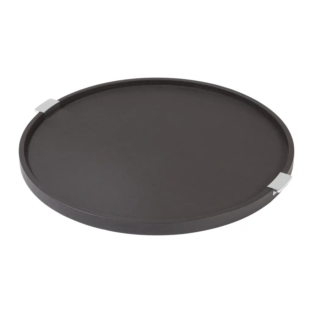Embodying the timeless elegance of its operatic namesake, the Puccini Round Tray from Giobagnara is a sophisticated centerpiece for modern entertaining. Expertly handcrafted in Italy, its solid wood structure is meticulously wrapped in richly textured calfskin leather. The clean, circular form is framed by two sleek metal handles, providing a secure grip and a touch of polished contrast. A harmonious fusion of classic form and exquisite materials, it’s an indispensable accessory for the gracious host. Highlights: