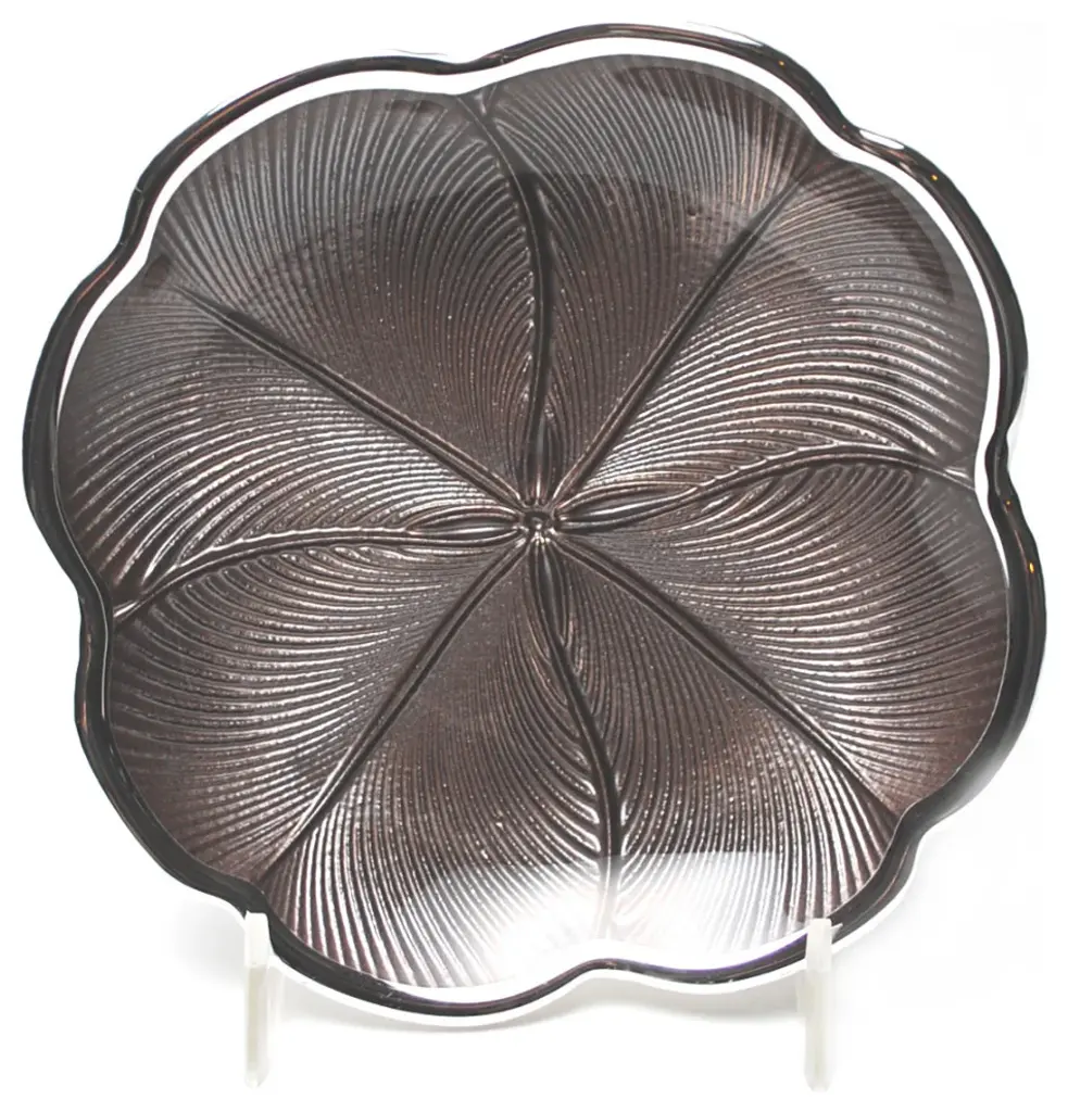 The Quadrifoglio Tray, 6" Diameter, is created from Italian glass that is hand decorated in brown and finished with a layer of pure silver applied to the outer surface of the glass that gives a luxury touch to your table and home. Exceptional Value with Elegant Style made in Italy. Professional packing for each item shipped from our U. S warehouse. As each piece is handcrafted no two pieces are exactly alike and slight variations in color and size may occur.Quadrifoglio Tray Brown Silver 6"� Dia.Made in ItalyExceptional Value and Elegant StyleAs each piece is handcrafted no two pieces are exactly alike and slight variations in color and size may occur.