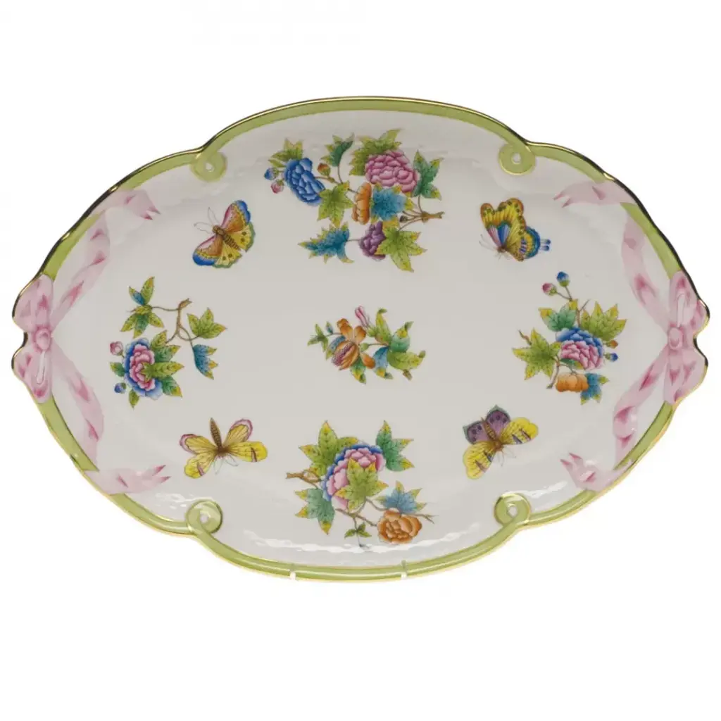 Queen Victoria Multicolor Rectangular Tray With Branch Handles 18 In L