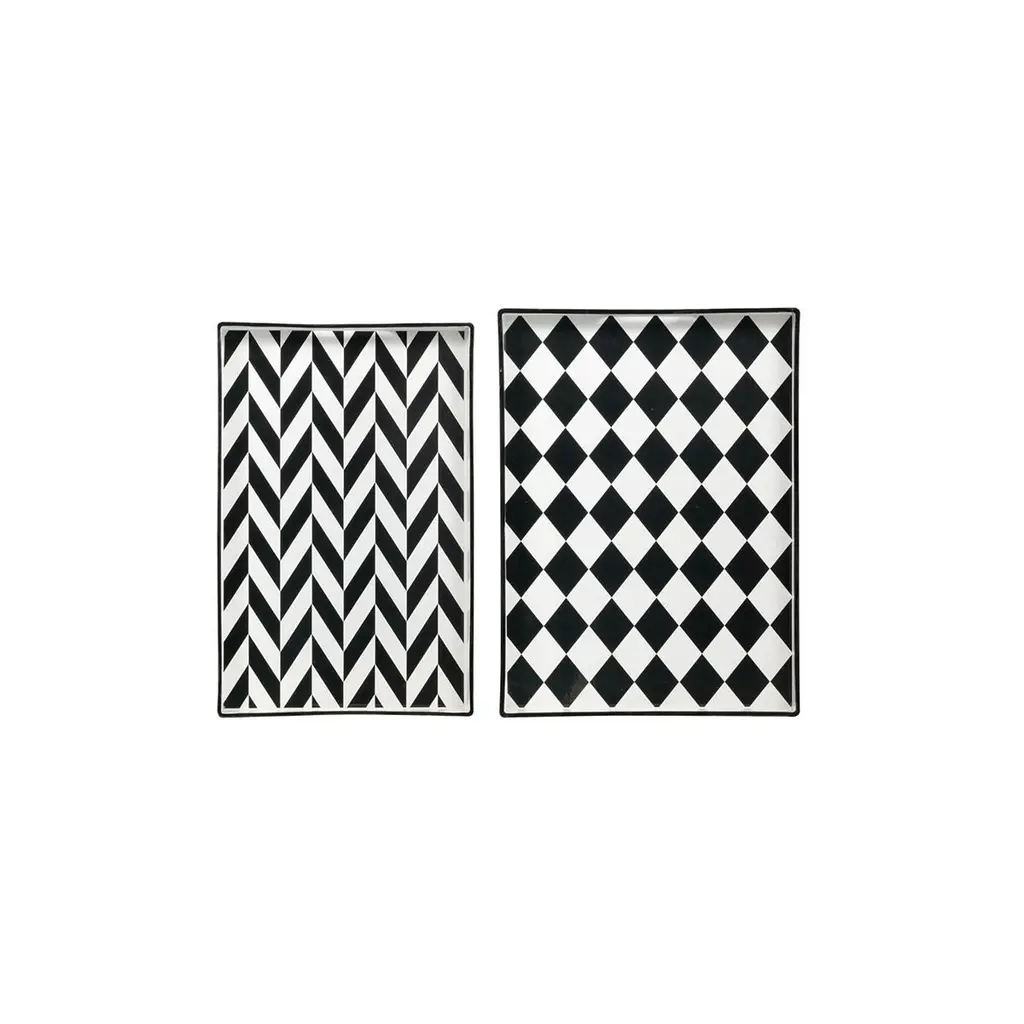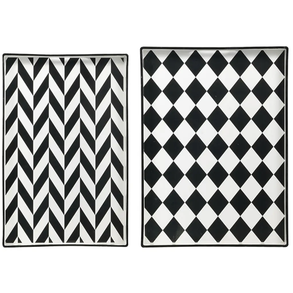 This set of two Quinn Black and White Rectangular Trays features bold, dynamic patterns in classic colors for a versatile look that complements a variety of styles.