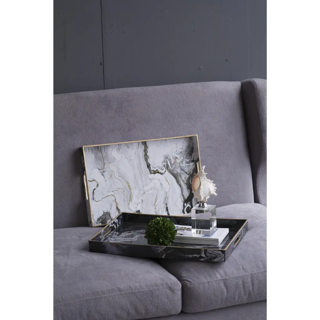 Quinn Rectangular Decorative Black And White Tray, Set Of 2
