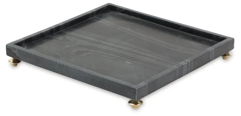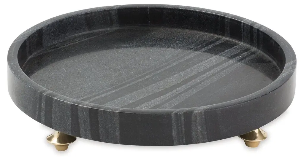A classic marble tray in high heels. The Quintessential Tray from Global Views adds a touch of luxury to a standard and functional household item. The tray is made of marble and rests atop decorative brass feet, elevating the style of serving drinks or hors d’oeuvres or propping up other decorative items.