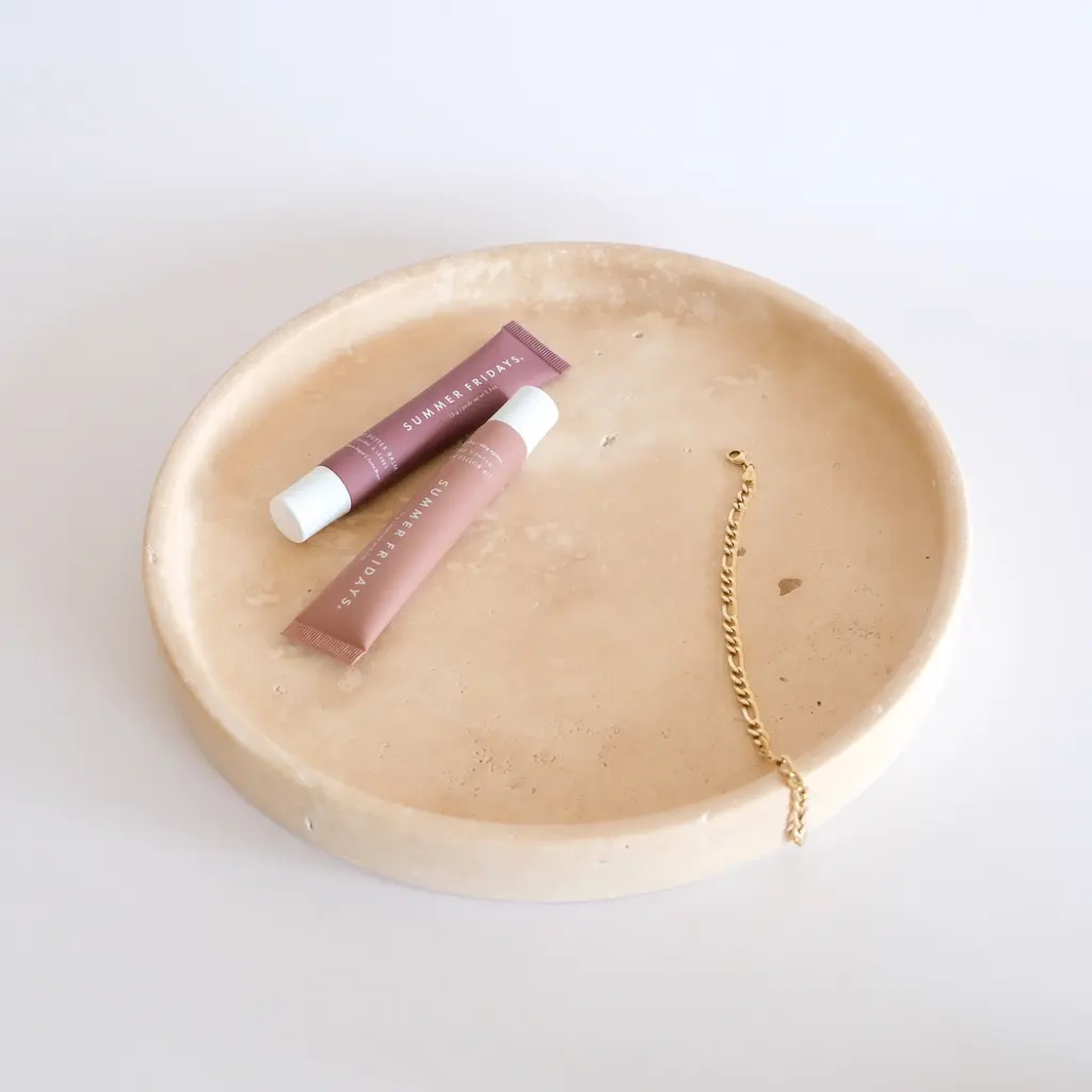 Enhance your decor with the Raya Travertine Tray, crafted from exquisite travertine stone. This classic round tray combines timeless beauty with minimalist elegance, making it a standout piece in any room. The natural texture of travertine adds a unique charm, while its durable construction ensures long-lasting use. Ideal as both a functional serving tray and a decorative accent, the Raya Travertine Tray is perfect for those who appreciate natural materials and sophisticated design.