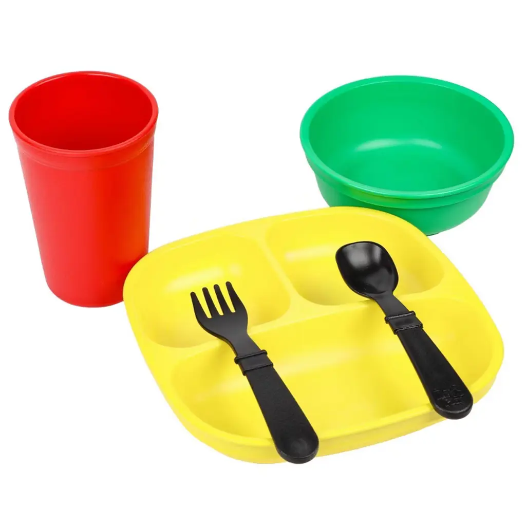 Celebrating the holidays with Re-Play’s 5pc Christmsas Holiday Cheer Mealtime Set!Make the holidays extra special with Re-Play’s Made-in-the-USA 5pc Set, featuring 1 divided plate,1 bowl, 1 tumbler, and 1 set of toddler utensils! Perfect for family dinners, holiday parties, or gifting to eco-conscious parents, this set combines practicality, durability and sustainability. Safe & Convenient:Microwave-safe for short 20-second warm-ups (not for cooking)Dishwasher-safe for quick and easy cleanupFor best results with red sauces, rinse promptly with grease-cutting soap before washingMade in the USA from recycled HDPE. BPA-, Phthalate-, PVC-, and Melamine-free.
