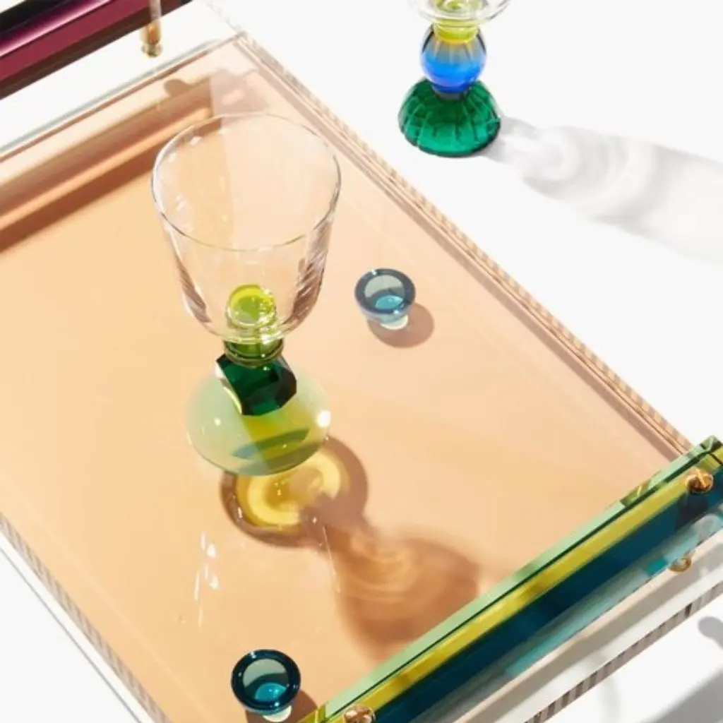 Rectangular crystal tray, FONT model, 21st century.Large rectangular tray with contemporary-style handles, in coloured crystal. A beautiful tray can serve as a versatile centrepiece, providing a focal point that links the elements of a room with elegance and grace. Production time: 2 to 6 weeksh: 10cm; w: 44cm; d: 26cm