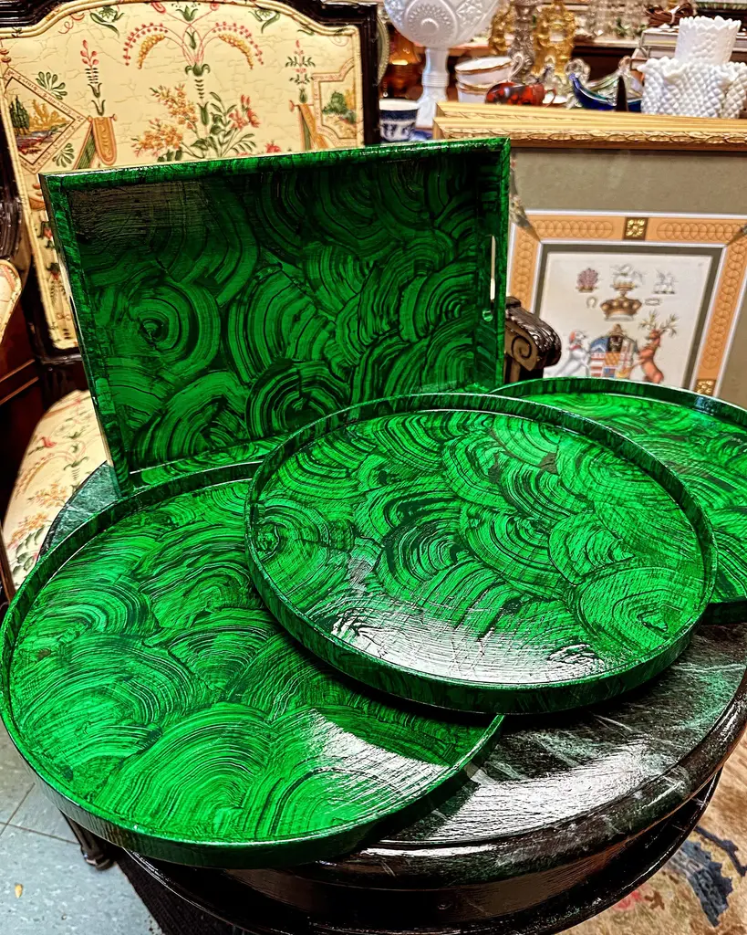 Rectangular Irwin And Lane Bar Tray Hand Painted In A Faux Malachite Finish