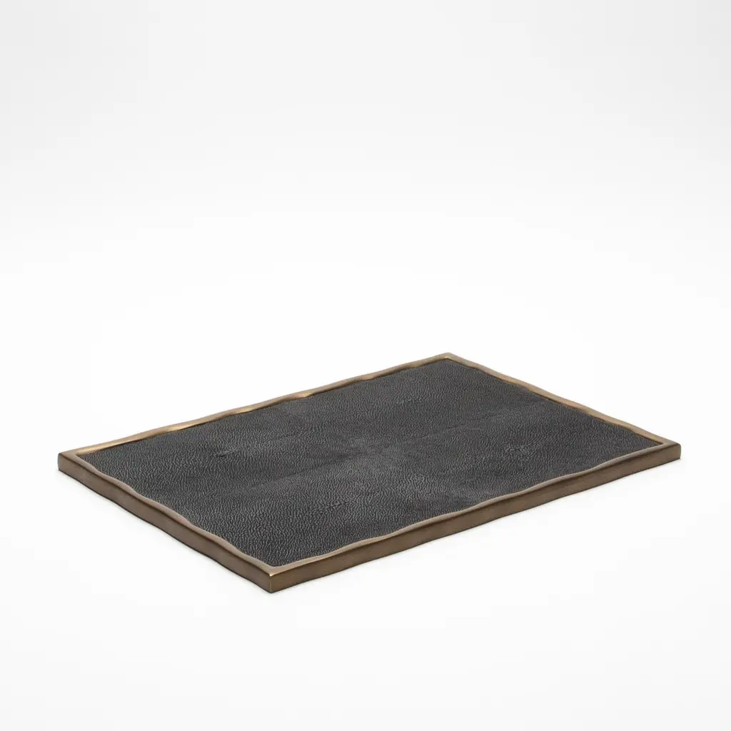 Rectangular Melting Tray In Shagreen With Bronze Patina Brass By R&y Augousti