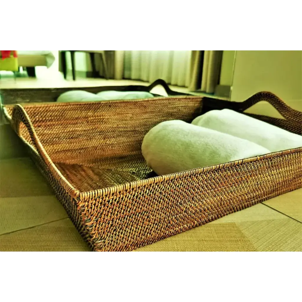 This portable basket provides diverse appeal to your house, whether you want to organize your living room or bring some harmony to a vibrant boho style. This substantial basket adds handy storage to any bedroom or living space. Carrying it is a breeze thanks to the sturdy handles. The finest feature is that it can be placed conveniently below your bed or coffee table, making it easy to keep rolled throw blankets nearby.