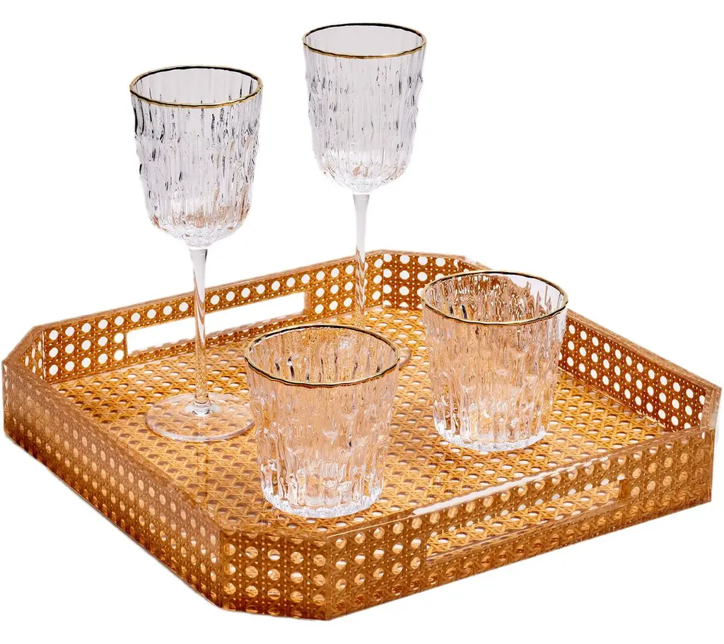 Introducing our signature reed pattern with a modern twist, reimagined in a luxurious collection. This classic design features a wicker cane style that complements any decor, ensuring a stylish experience throughout your space. It looks chic as a standalone or when paired with matching pieces for a cohesive look.