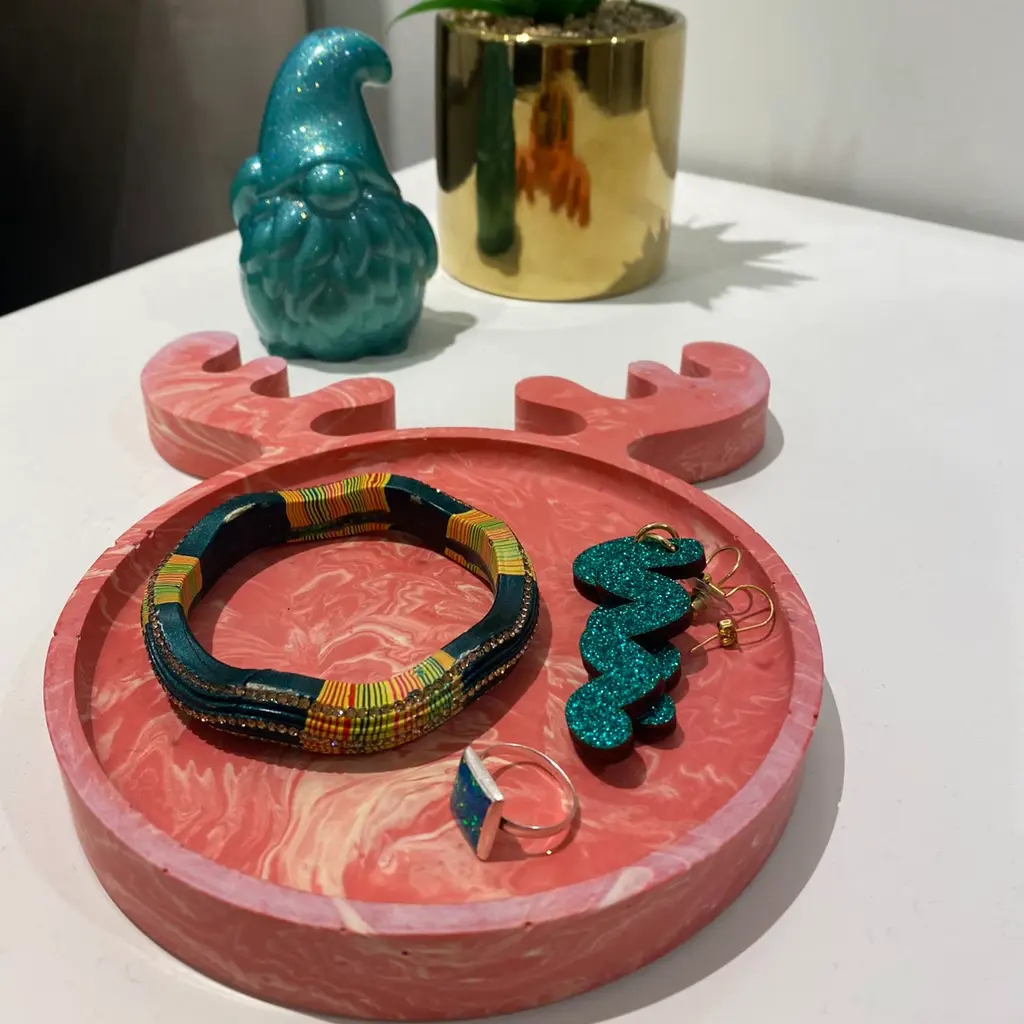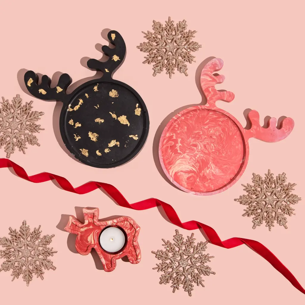 Reindeer trays brighten up your home, while also helping you organize any clutter cleanly. It's the perfect piece to decorate a coffee table or bedside table this festive season. Made with a smooth finish, the trays also come with a cork backing to protect your surfaces. By Shax products are handmade per order and will look slightly different to the product images. Marbled pieces will always be one-offs and will not look exactly like the display piece in the image. Pieces may also have small air bubbles, which is a result of the hand poured working process of jesmonite and is a natural, authentic finish.