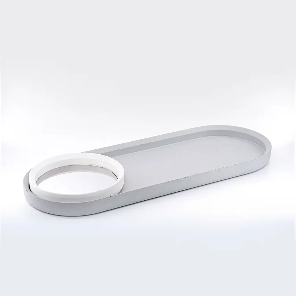 The Renzo Tray collection is a family of four different unique pieces completely handmade in concrete. The smallest member of the family is available with or without a mirror and fits into medium and larger-sized trays. The concrete mix required to cast these pieces makes the finishing especially smooth. The piece is available in different colors: salvia, silver, ardesia, white, and candy Each piece is unique, no two are the same. Please, ask the Concierge for further details.
