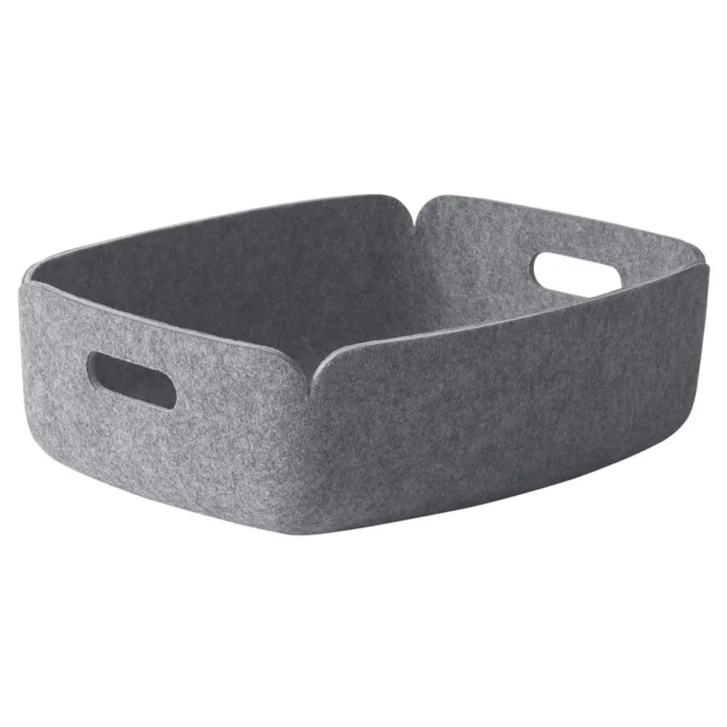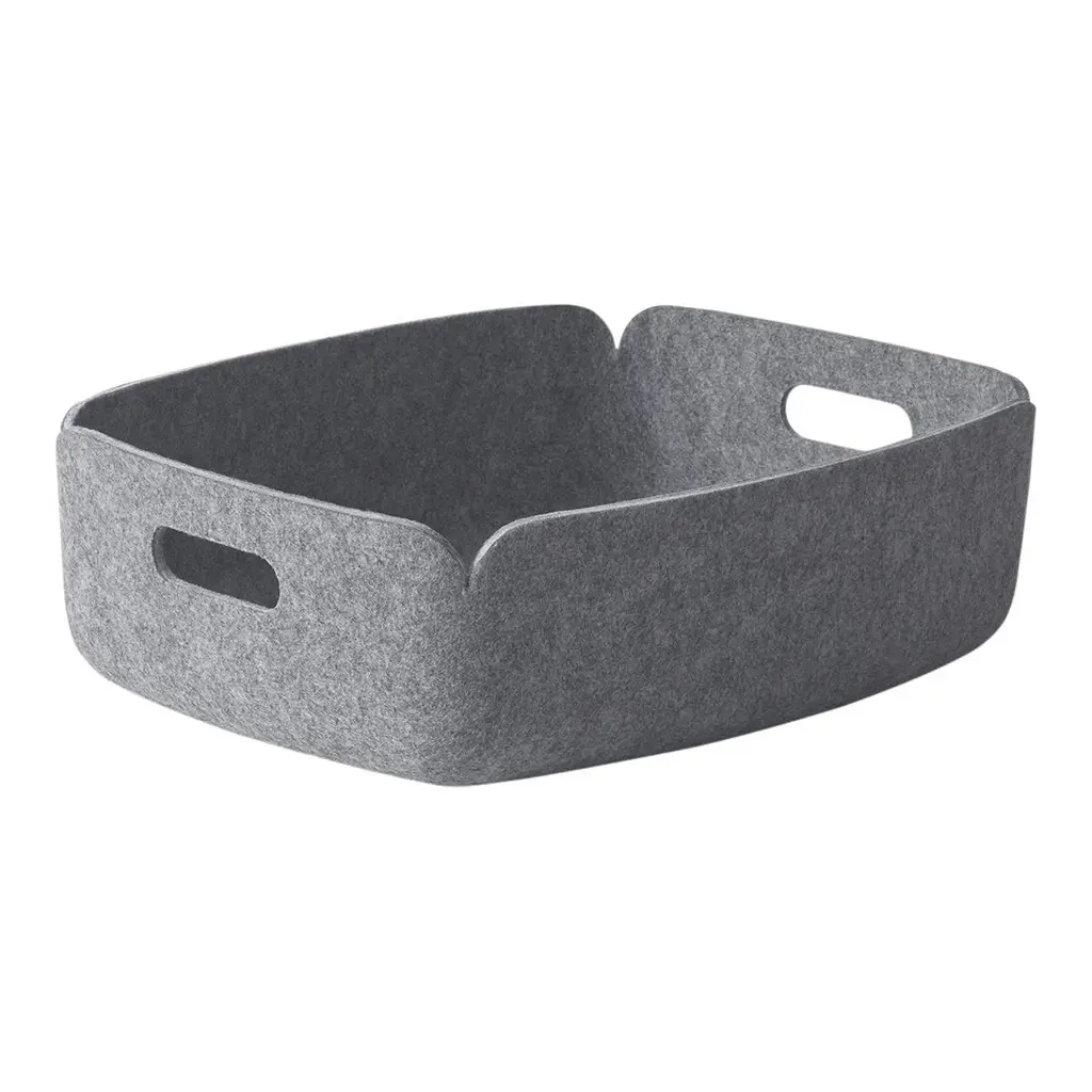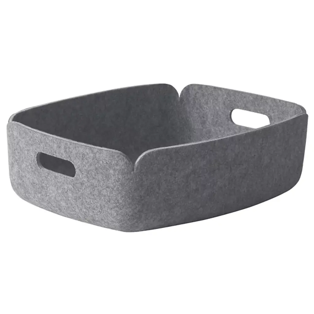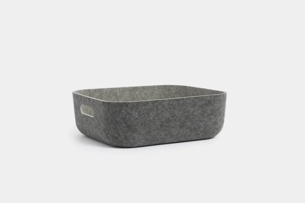 Restore a little order to things. Muuto's non-scratch felt tray, fabricated from recycled plastic bottles, expands the eco-friendly series made from PET material from Finnish designer Mika Tolvanen. Use it to hold books, magazines or electronics or to contain papers or miscellany on a table, shelf or desk. And its softly rounded, organic contours will fit in anywhere.