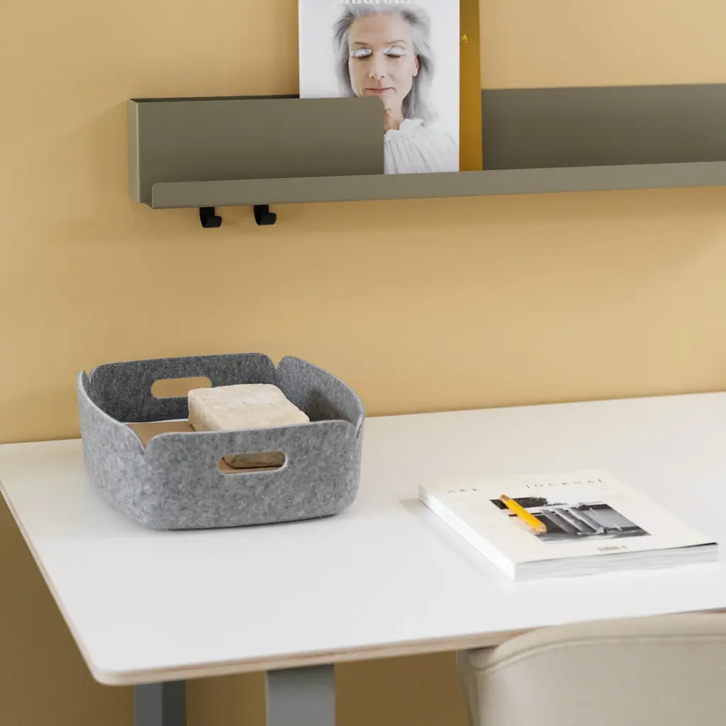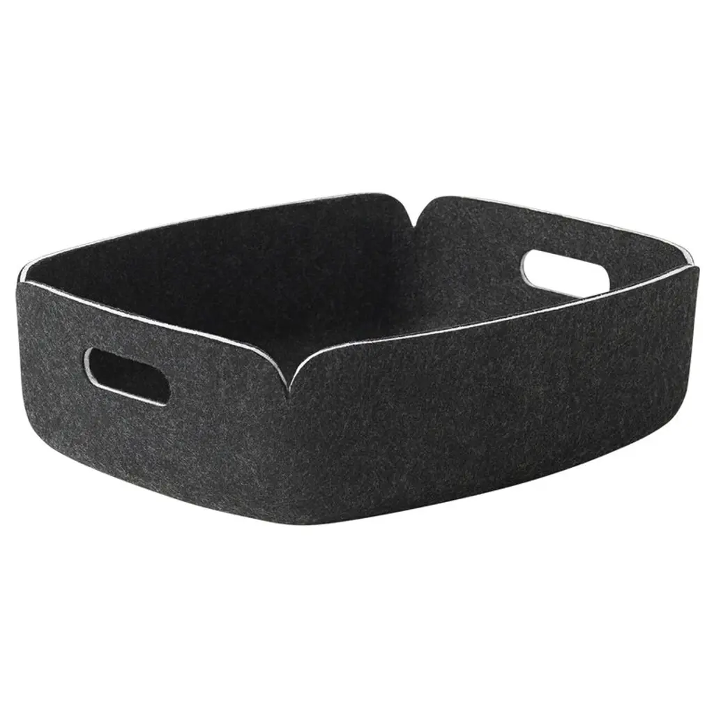 Restore a little order to things. Muuto's non-scratch felt tray, fabricated from recycled plastic bottles, expands the eco-friendly series made from PET material from Finnish designer Mika Tolvanen. Use it to hold books, magazines or electronics or to contain papers or miscellany on a table, shelf or desk. And its softly rounded, organic contours will fit in anywhere.