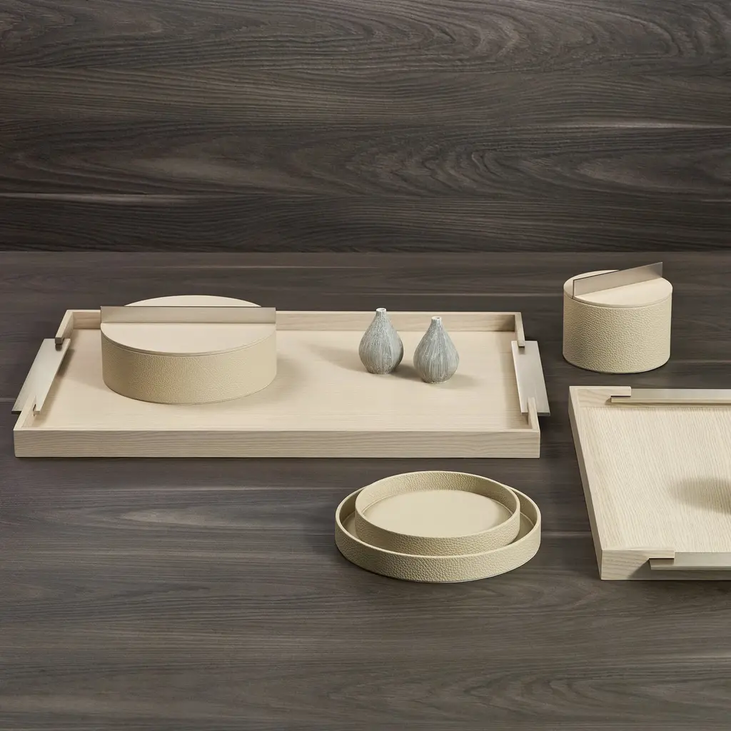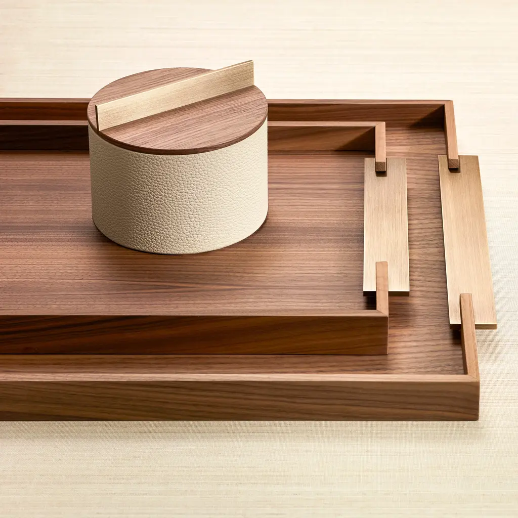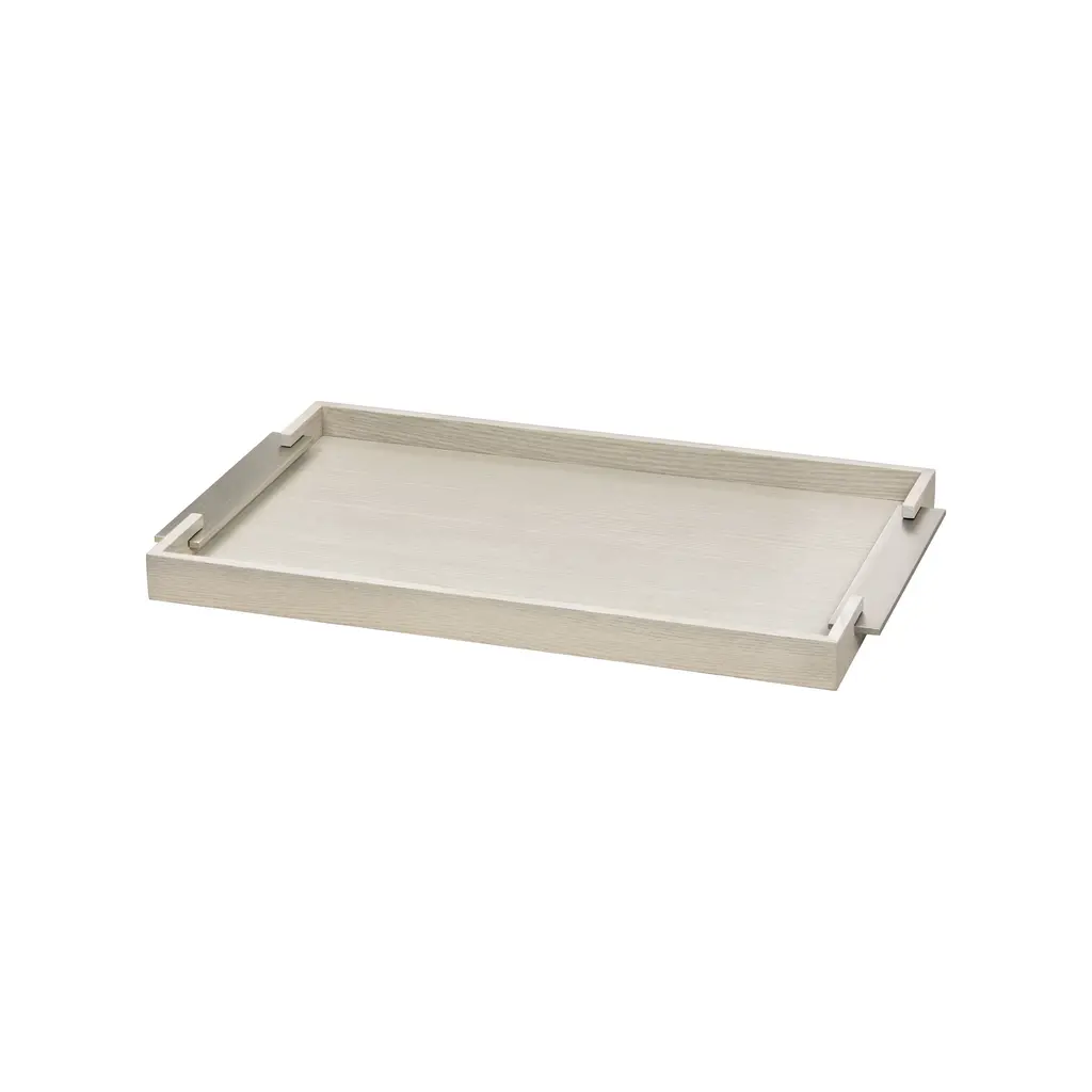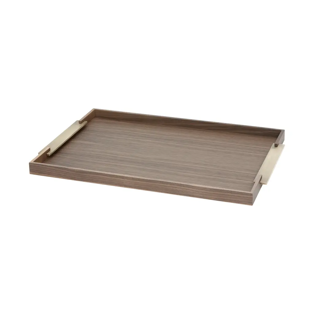 A celebration of pure form and artful materials, the Giobagnara x Riviere Dama Tray is a sophisticated design from the Giobagnara and Riviere collaboration. Expertly handcrafted in Italy, this generously scaled tray is carved from solid walnut or ashwood, showcasing its deep, natural grain. The elegant, elongated silhouette is anchored by two striking metal handles, creating a focal point that is both practical and decorative. A fusion of natural warmth and metallic precision, it brings timeless elegance to any surface. Highlights:
