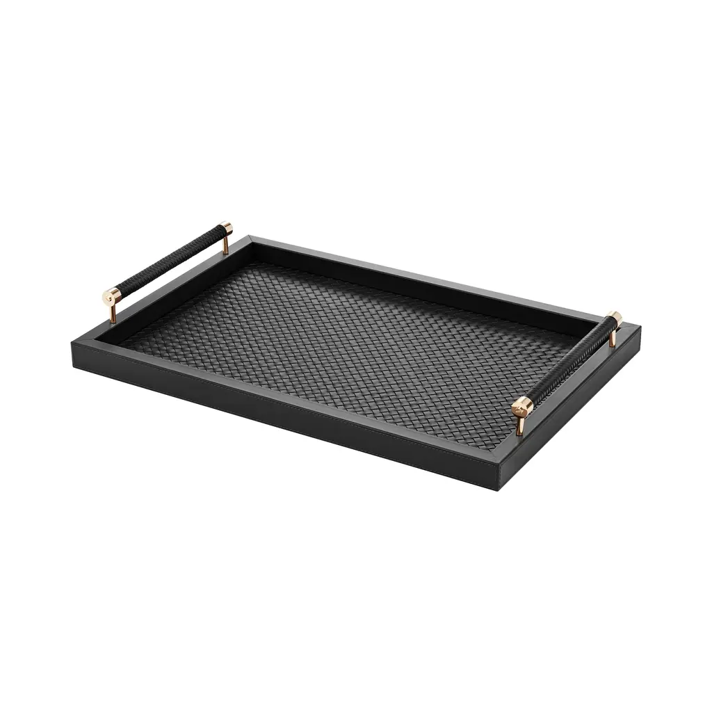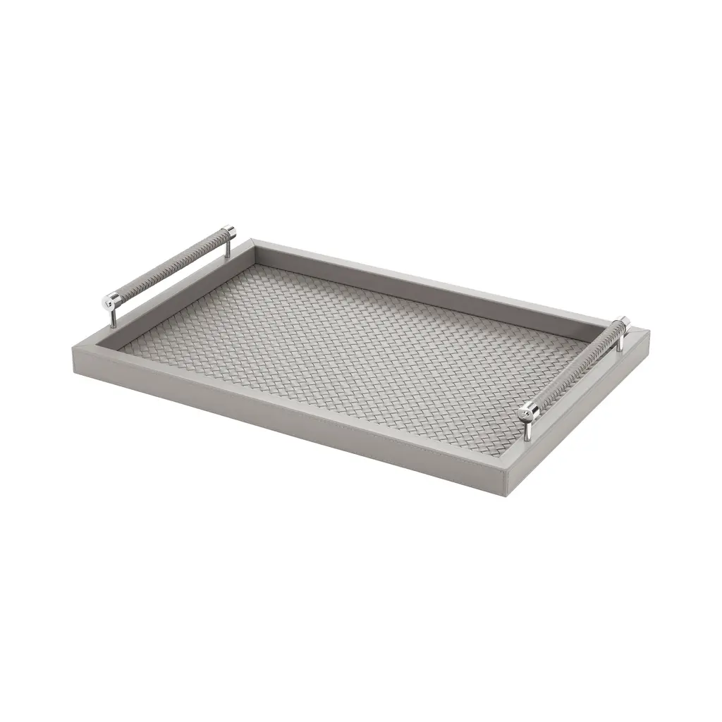 A masterpiece of textural artistry, the Giobagnara x Riviere Diana Handwoven Tray is a sophisticated design from the Giobagnara and Riviere collaboration. Expertly handcrafted in Italy, this piece reveals a hidden luxury: A stunning, meticulously handwoven leather lining that contrasts with its smooth exterior. The matching handwoven handles, accented with polished metal, provide a secure and elegant grip. A perfect expression of understated opulence, it brings a sense of tactile discovery and timeless style to any setting. Highlights:
