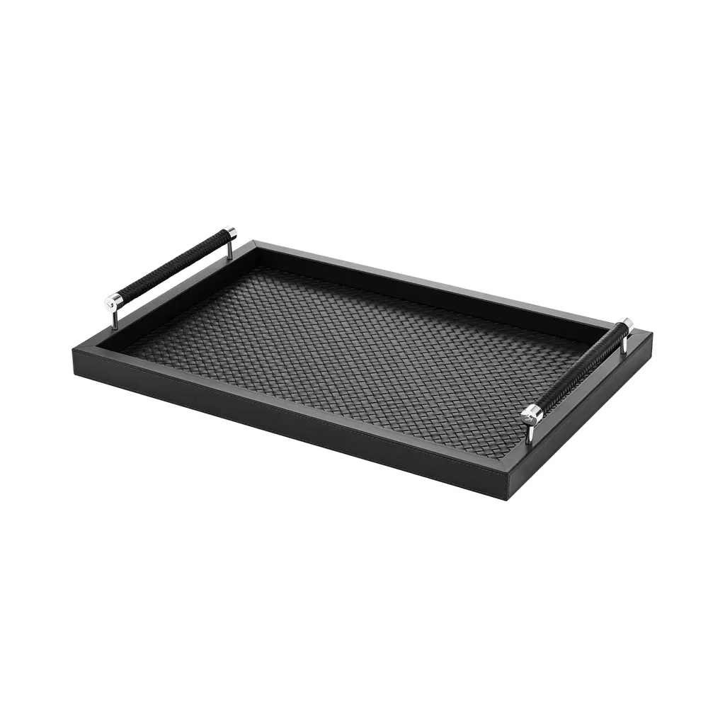 A masterpiece of textural artistry, the Giobagnara x Riviere Diana Handwoven Tray is a sophisticated design from the Giobagnara and Riviere collaboration. Expertly handcrafted in Italy, this piece reveals a hidden luxury: A stunning, meticulously handwoven leather lining that contrasts with its smooth exterior. The matching handwoven handles, accented with polished metal, provide a secure and elegant grip. A perfect expression of understated opulence, it brings a sense of tactile discovery and timeless style to any setting. Highlights: