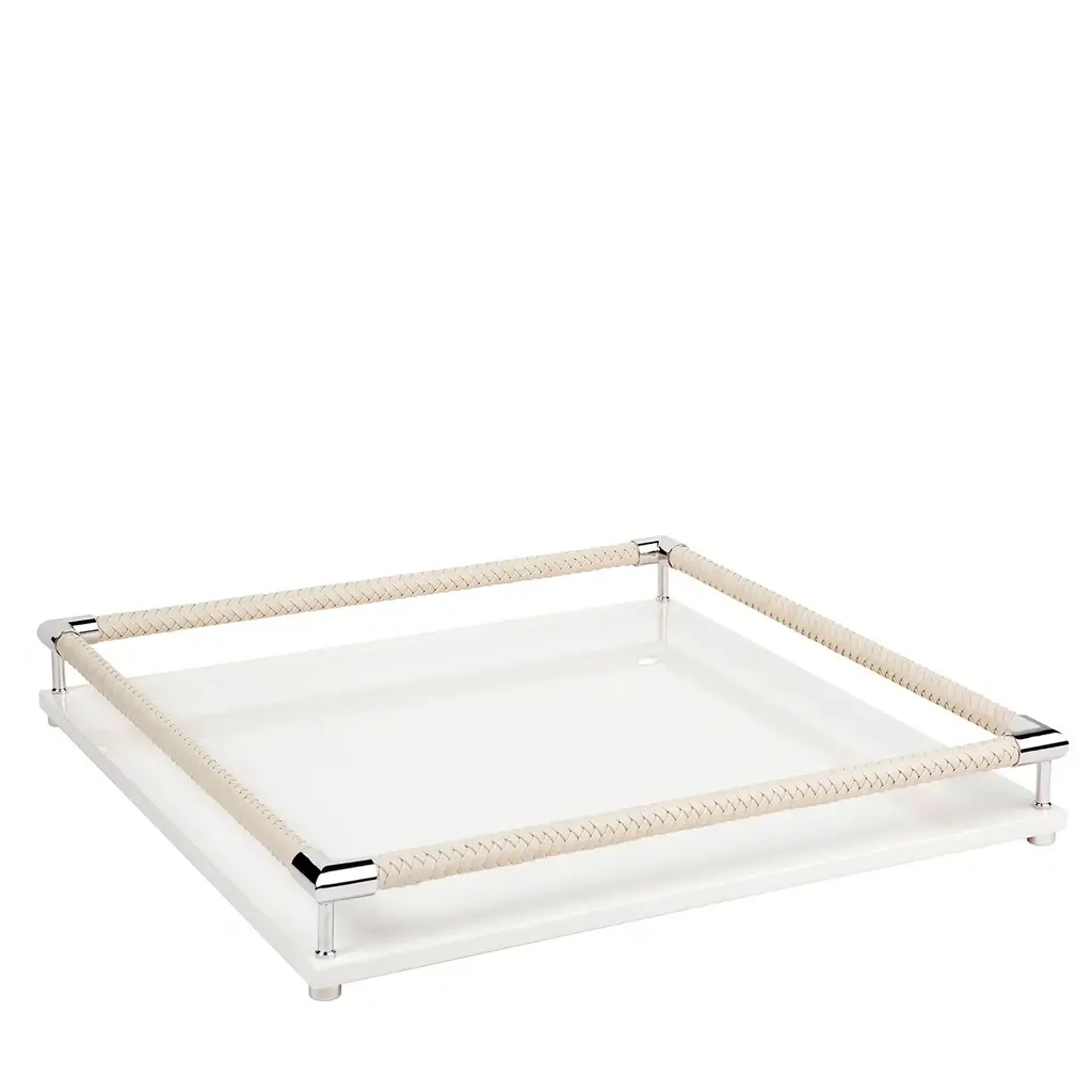 A stunning juxtaposition of sleek modernity and artisanal craft, the Giobagnara x Riviere Thea Lacquer Tray is a sophisticated design from the Riviere collaboration. Expertly handcrafted in Italy, this vanity tray features a flawless, high-gloss lacquered base. This modern foundation is beautifully enclosed by a meticulously braided leather railing, accented with polished metal details. The perfect fusion of contemporary sheen and heritage technique, it’s a chic and elegant stage for your most cherished accessories. Highlights: