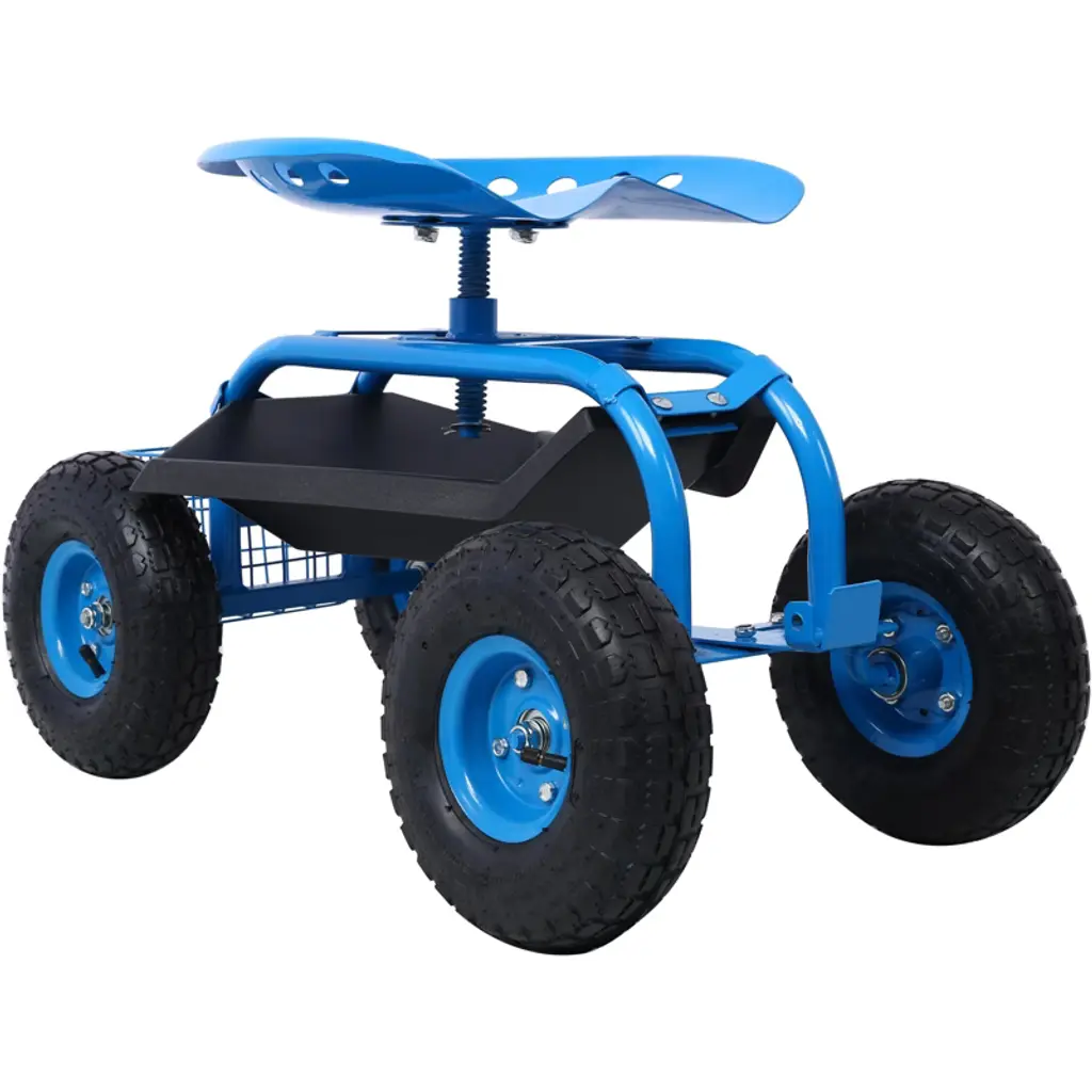 Rolling Garden Scooter Garden Cart Seat With Wheels And Tool Tray, 360 Swivel Seat,blue--refurbished
