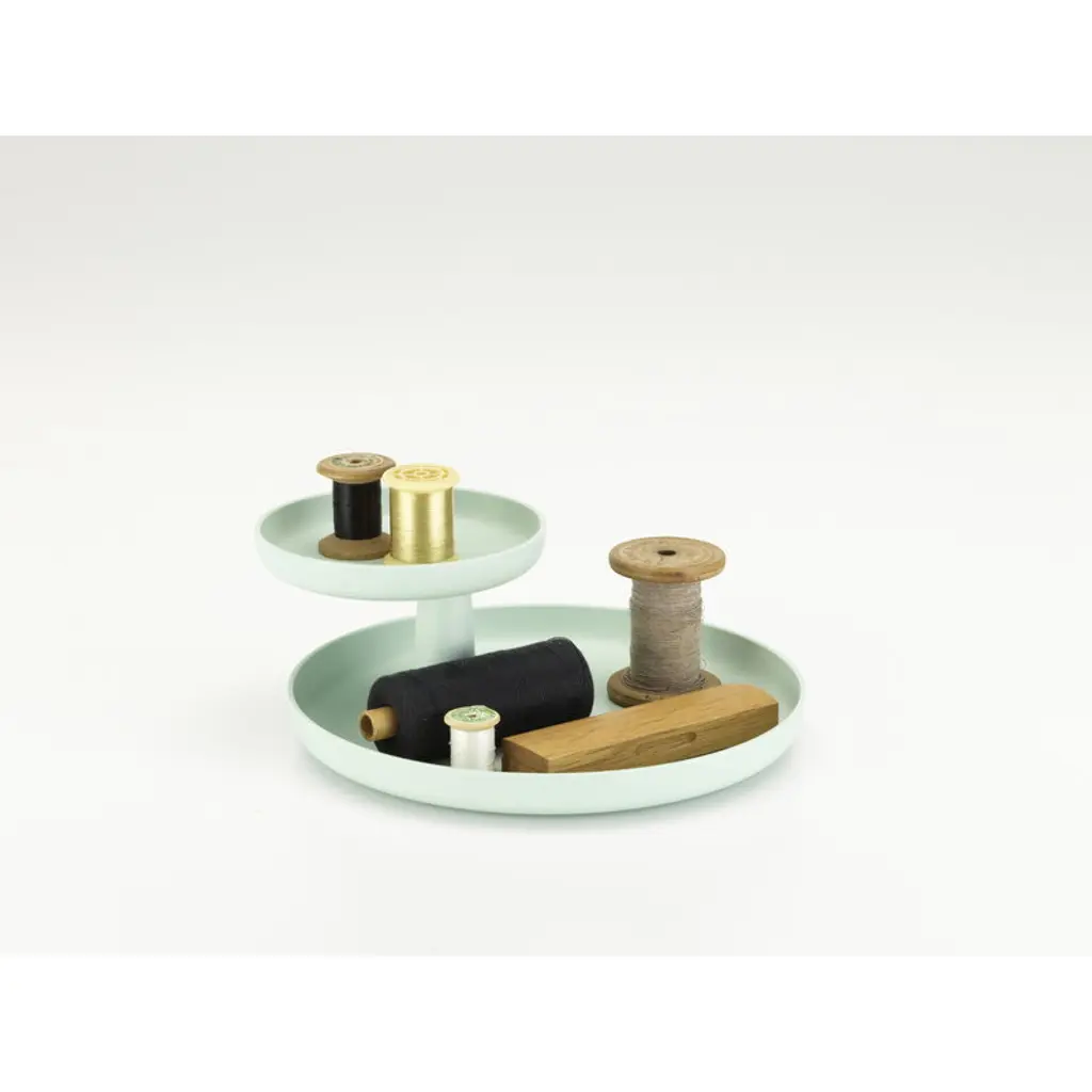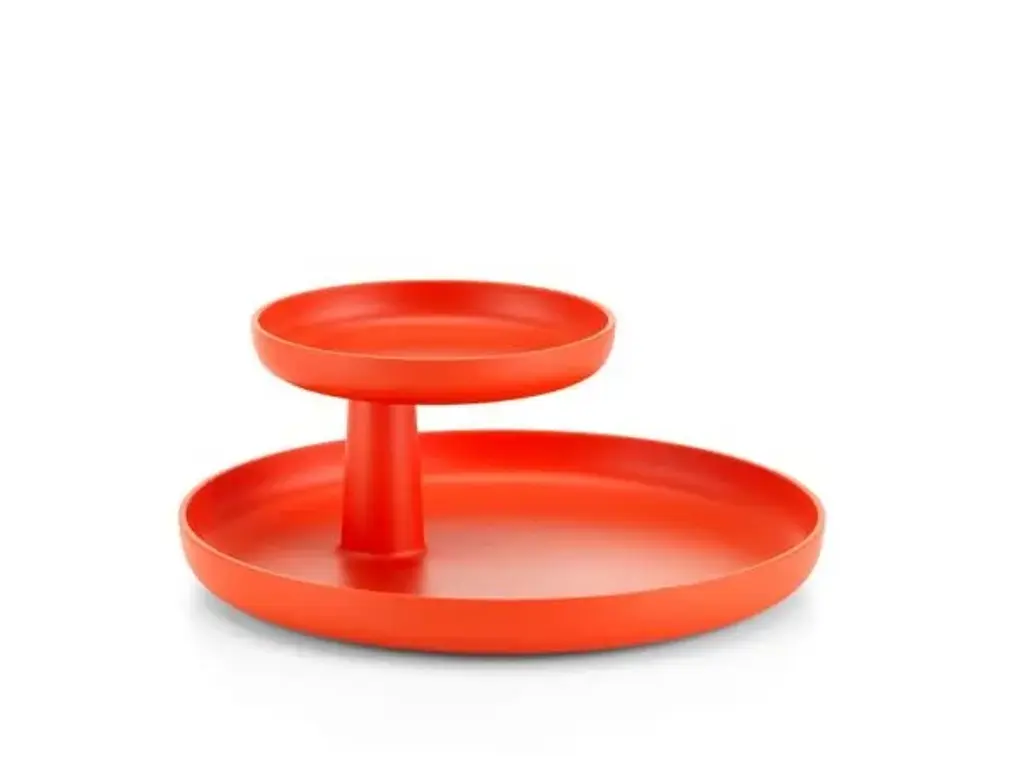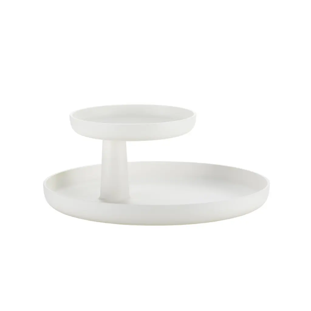 Designed in 2014 by Jasper Morrison for Vitra, the Rotary tray is an updated version of a classic, round tray. Besides a serving tray, it also functions as a decorative storage tray for small objects, and the high edges prevent items from falling. The rotating upper tier adds both a functional and playful touch for the tray. Rotary is made of durable ASA plastic and available in several beautiful colors.