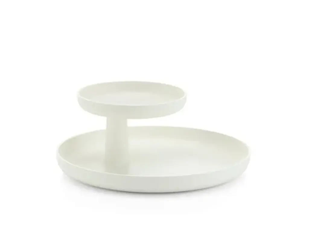 Designed in 2014 by Jasper Morrison for Vitra, the Rotary tray is an updated version of a classic, round tray. Besides a serving tray, it also functions as a decorative storage tray for small objects, and the high edges prevent items from falling. The rotating upper tier adds both a functional and playful touch for the tray. Rotary is made of durable ASA plastic and available in several beautiful colors.