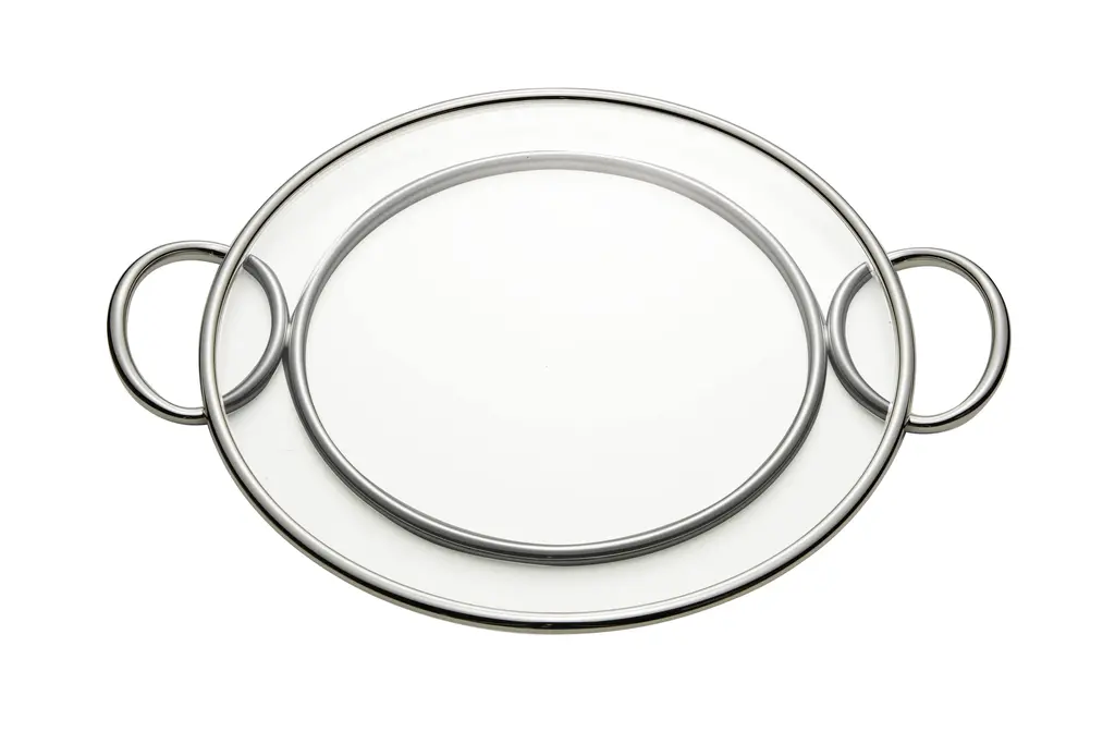 This is a smooth and shiny stainless alloy Binario tray with handles.