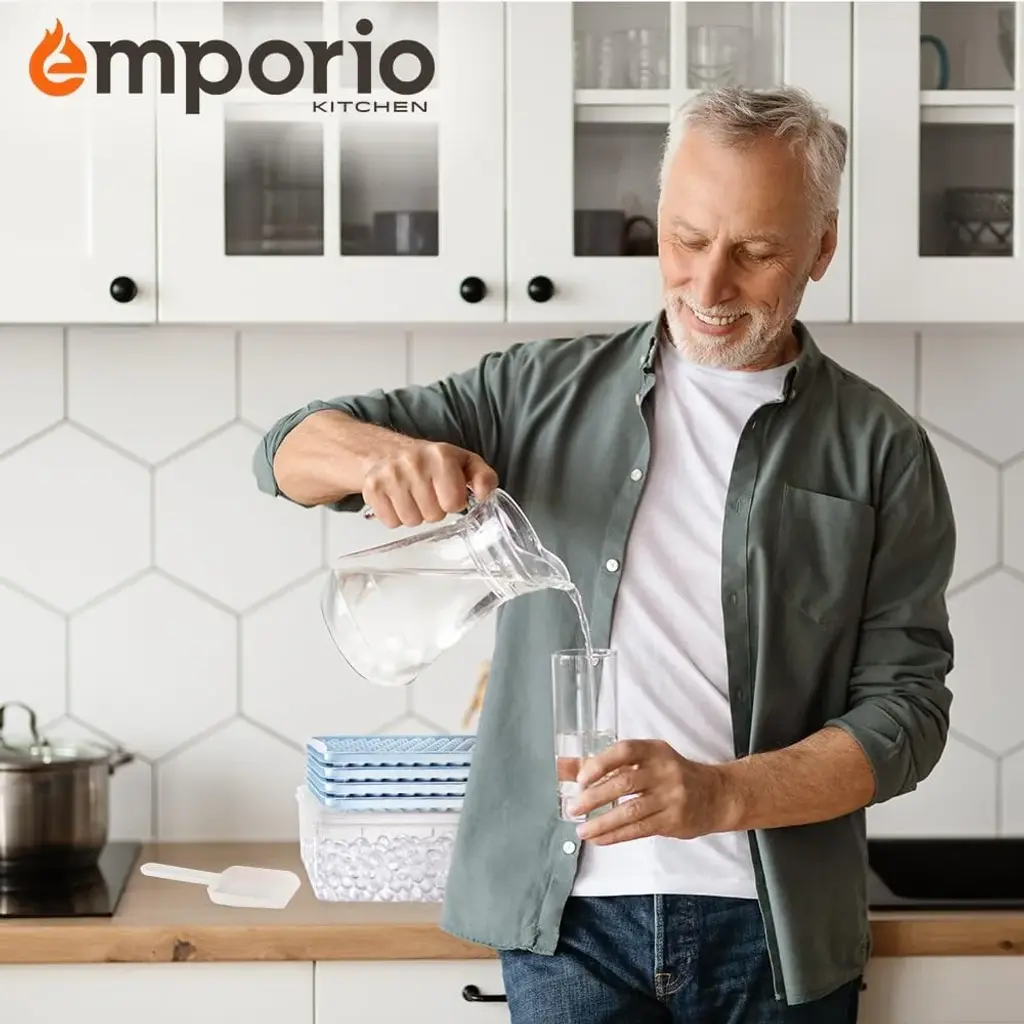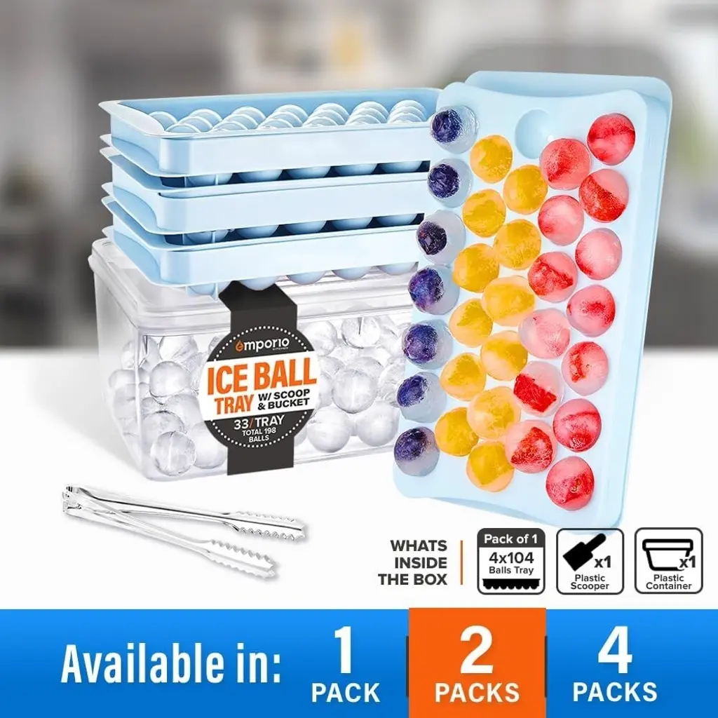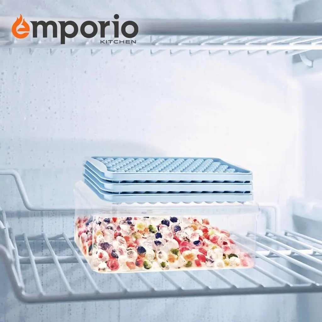 Experience a new level of refreshment with the Emporio Kitchen Round Ice Ball Tray Set. This innovative ice cube tray set is perfect for those who love to entertain or simply enjoy a well-crafted drink at home. With a simple fill-and-stack design, creating perfectly round ice balls has never been easier. Just pour water into the trays, allow the excess to drain through the built-in holes, and stack them in your freezer. In just 4-8 hours, you'll have up to 1,664 beautifully formed ice balls ready to enhance your favorite beverages. Made from high-quality, flexible plastic, these trays make releasing ice a breeze. A quick twist is all it takes to pop out your ice balls, whether you're chilling whiskey, cocktails, coffee, or even smoothies. The sturdy yet flexible design ensures that the trays are durable enough to last, while still being easy to use. Plus, safety is always top of mind—these trays are crafted from BPA-free, food-grade PP material, making them odorless, easy to clean, and completely safe for your family. Everything from the lids to the containers is stackable, helping you save space and keep your freezer organized. But this set isn’t just for ice. Its versatility allows you to get creative in the kitchen. Fill the trays with fruits, yogurt, chocolate, or even baby food to create fun, frozen treats that everyone will love. The complete set includes four trays, four plastic scoops, and four containers, all fitting perfectly into your freezer with dimensions of 9.25 x 6.30 x 3.94 inches and the ice ball is 0.60 inches in size. Whether you’re hosting a gathering or enjoying a quiet moment, the Emporio Kitchen Round Ice Ball Tray Set is your go-to for stylish and practical ice-making, adding a touch of elegance to every drink.