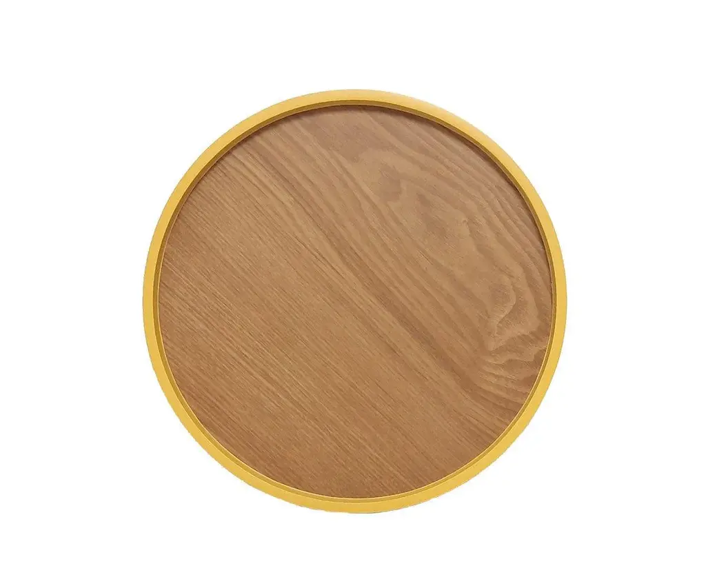 The Round Lacquer Trim Tray comes ready to serve. Featuring a base in natural wood tones, this tray stands apart thanks to the pop of color that surrounds the outer rim. Use this charming decor piece as a way to extend your surface space by placing on an ottoman in front of your sofa, or as a way to beautifully organize your existing tabletop displays.