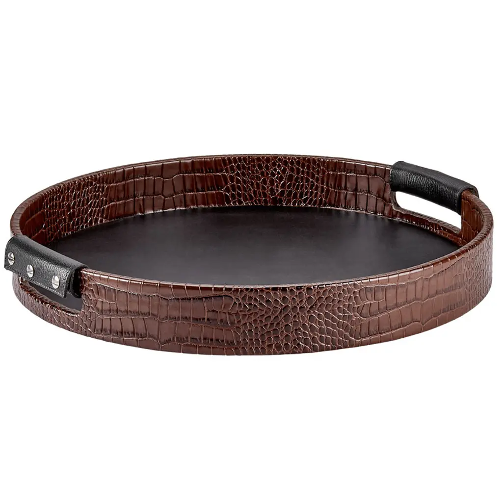 An elegant beige-colored faux leather upholstery enhances the sleek character of this splendid round tray, an exquisite accent piece for a contemporary-style dining set. Handcrafted of steel, it is also available in other colors, please inquire with the Concierge for further information and customization options.