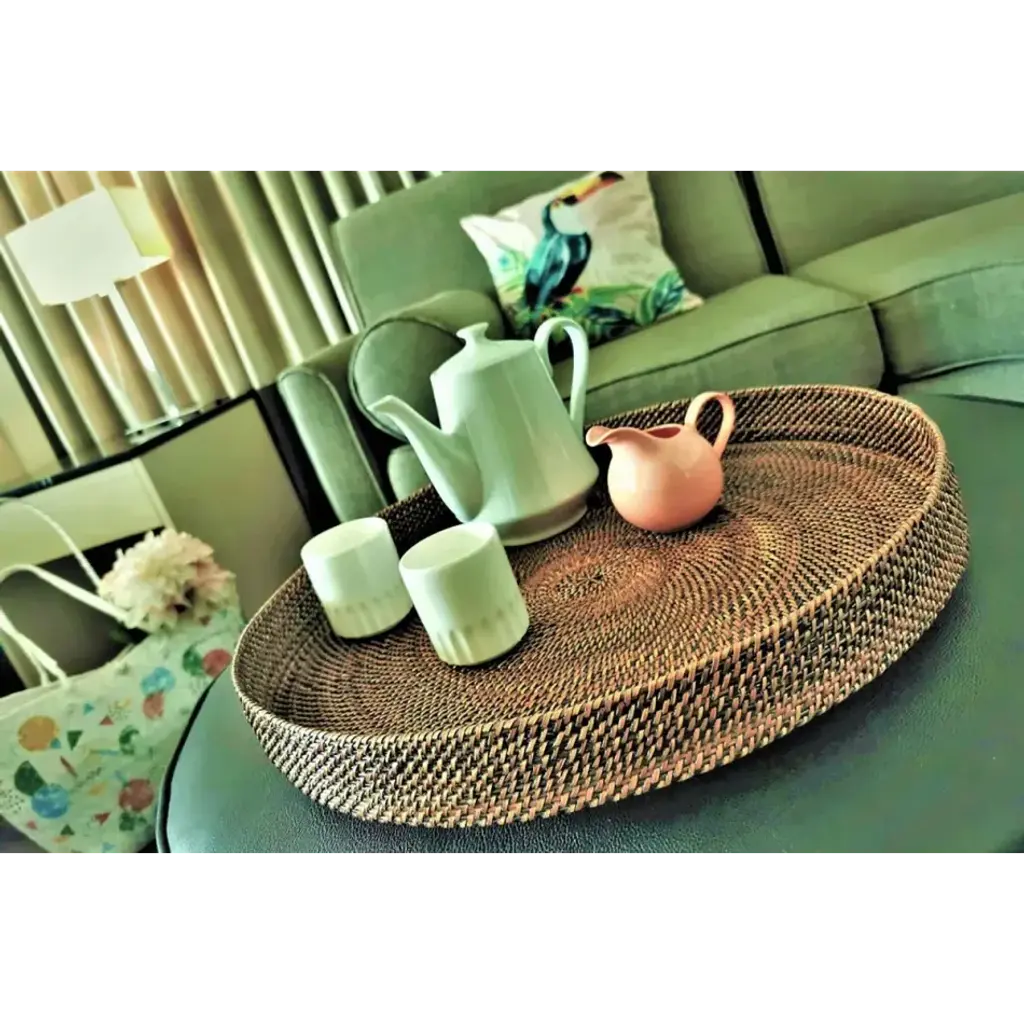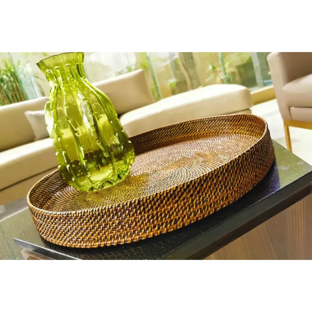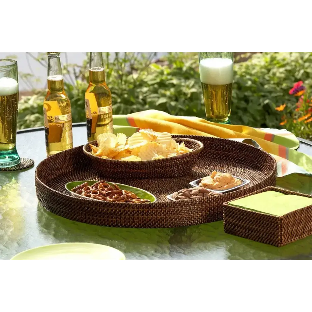 The natural color variations and timeless beauty of the rustic vines used to weave this beautiful tray instantly give any space an earthy makeover and a lovely touch. This environmentally friendly 19-inch diameter woven tray allows you to entertain with gorgeous organic decorative accents.