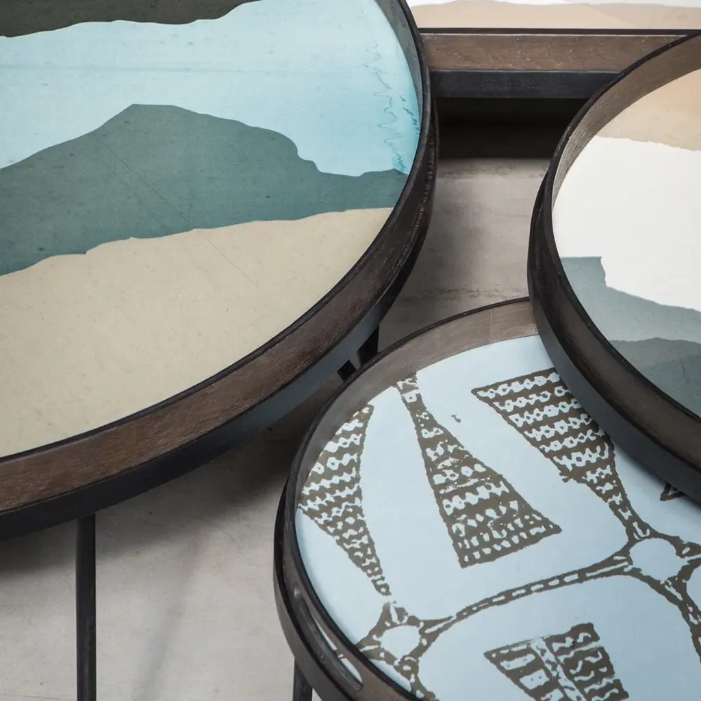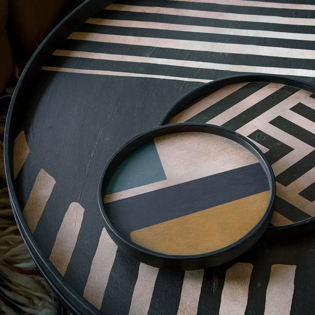 Can be combined with the Round Tray Coffee Table or the Round Tray Coffee Table Set. Tables to be ordered separately. A subdued color palette meets captivating motifs inspired by nature and travel. The tray experiments with the balance between rich patterns offset with muted tones, revealing the beauty behind the deceivingly ordinary subjects from which inspiration is drawn. In doing so, this collection captures the essence of timelessness.