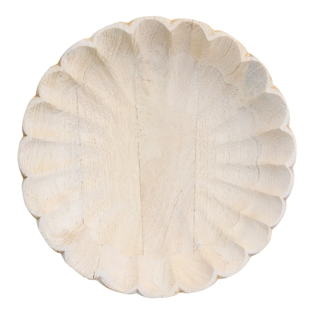 Full of coastal chic with its shell-like scalloped edge, our decorative tray is hand carved by artisans in India. Abounding with organic, artisan-rustic appeal, it's perfect for highlighting a favorite decorative accessory - like a colorful bead garland - or holding seasonal potpourri or a selection of dried botanicals. Highly giftable, it looks perfect on a console or side table, and brings warm, natural texture to your room.