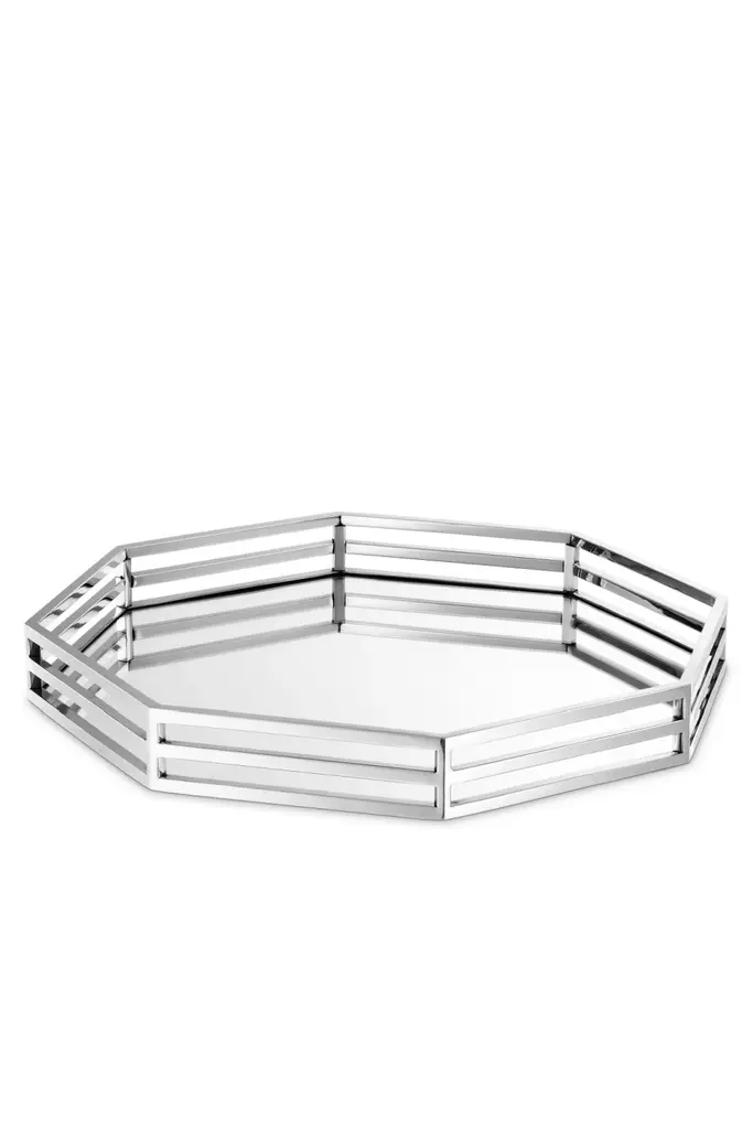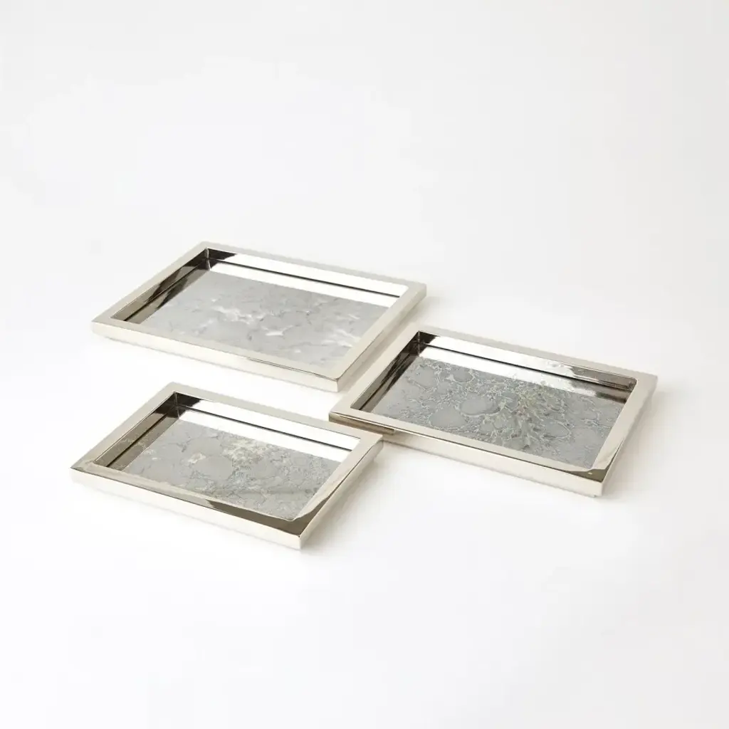 Stepped Nesting trays are made of polished nickel steel and brass with an antique mirrored bottom over MDF. Set of three. From a fashion forward perspective, Global Views offers accessories, furniture, statement lighting, and an assortment of rugs and mirrors to add beauty and joy to your home.