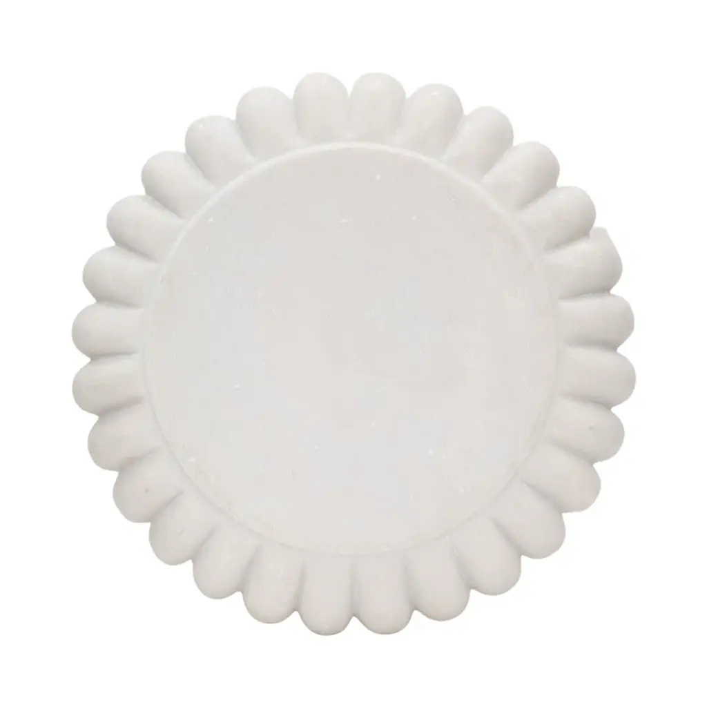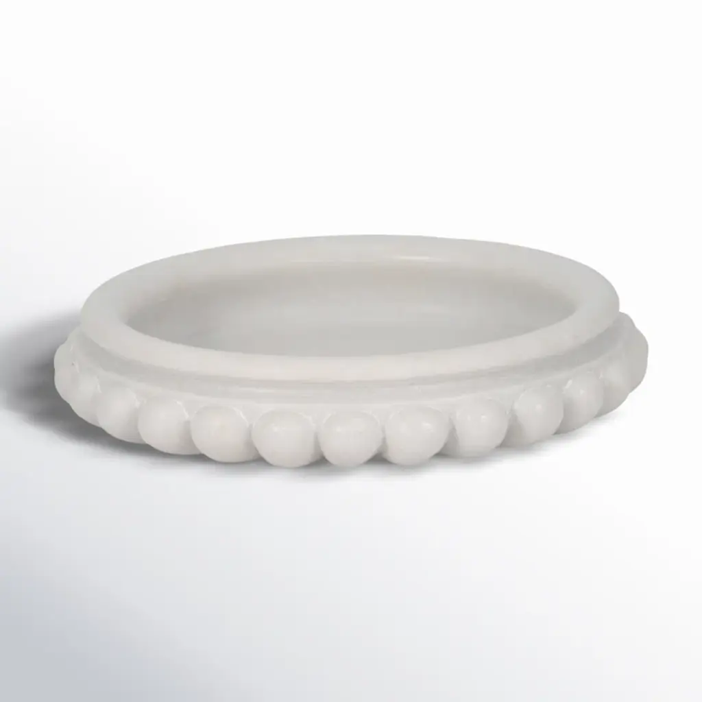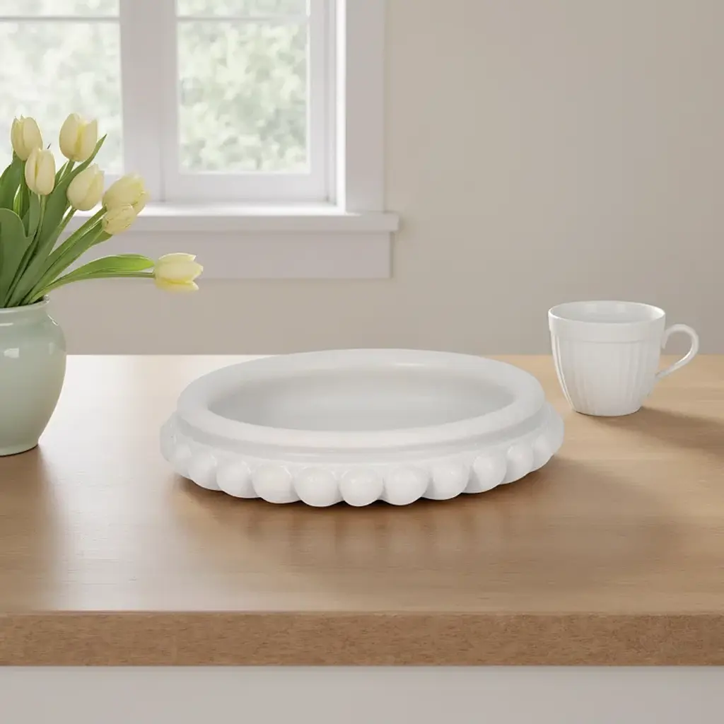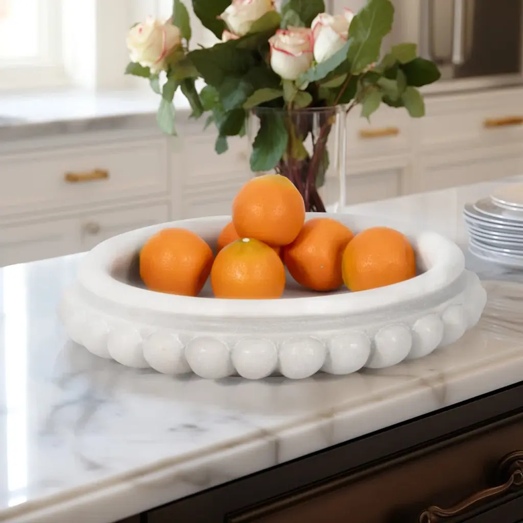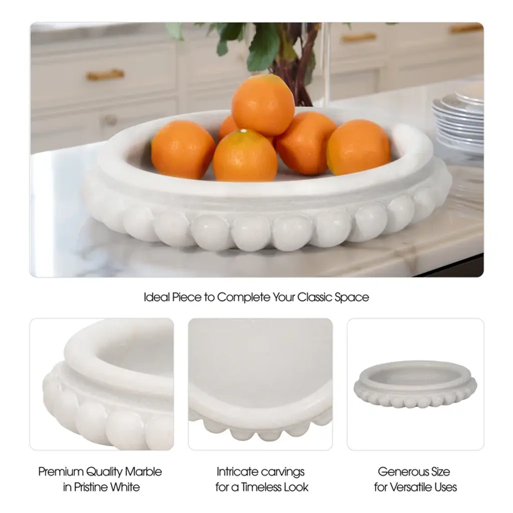 Sagebrook's Rachael Elegant 18" Windsor Carved Marble Tray, White Timeless Centerpiece For Any Setting
