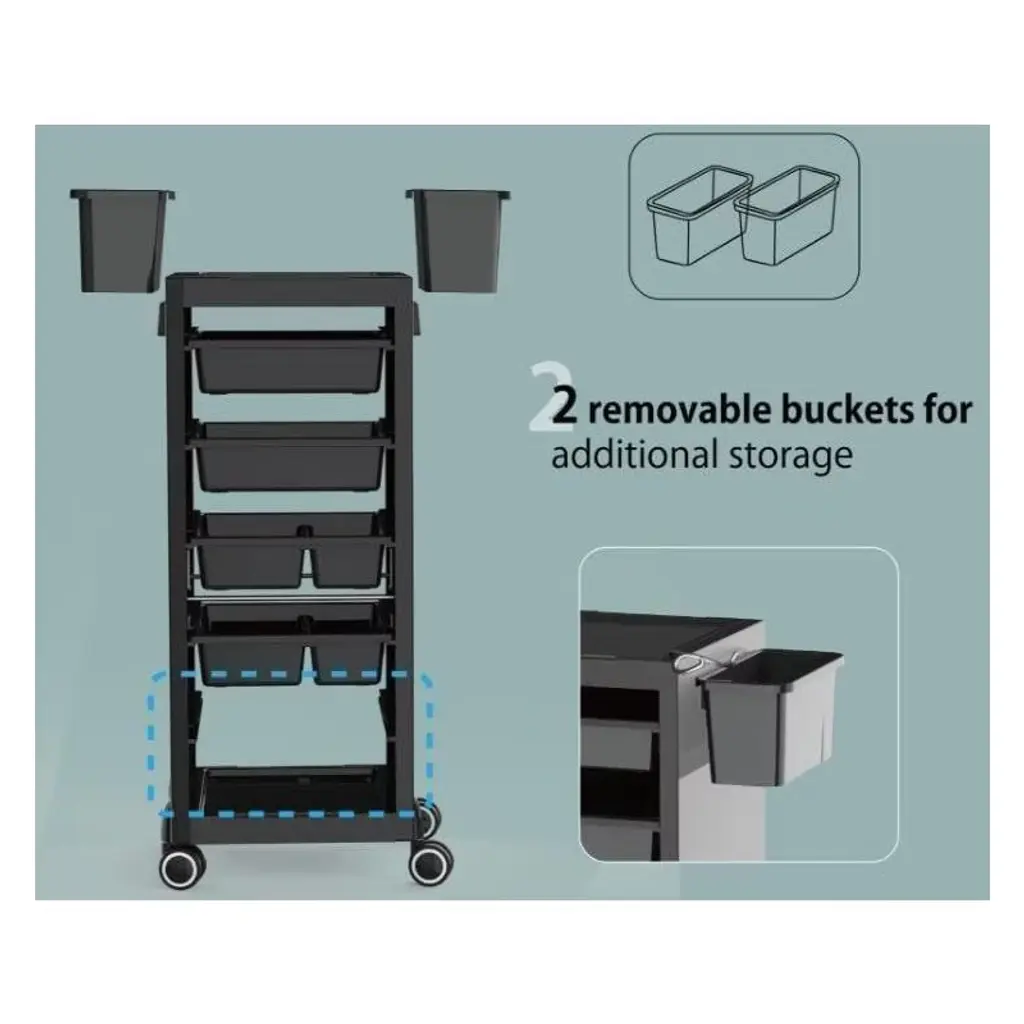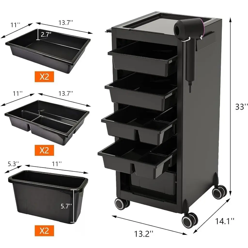 Salon Trolley, Storage Trolley, Stylist's Equipment Storage Trolley, Hairdryer Holder, 6 Extra Storage Trays And Free Combination Tool, 1 Stand