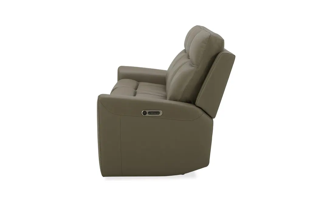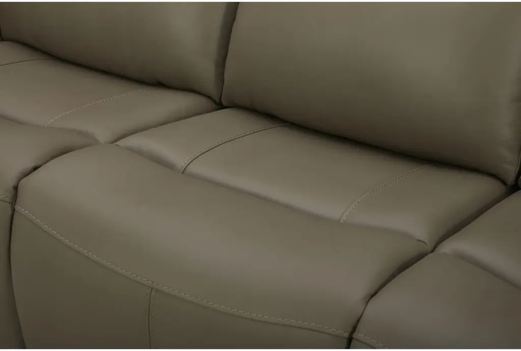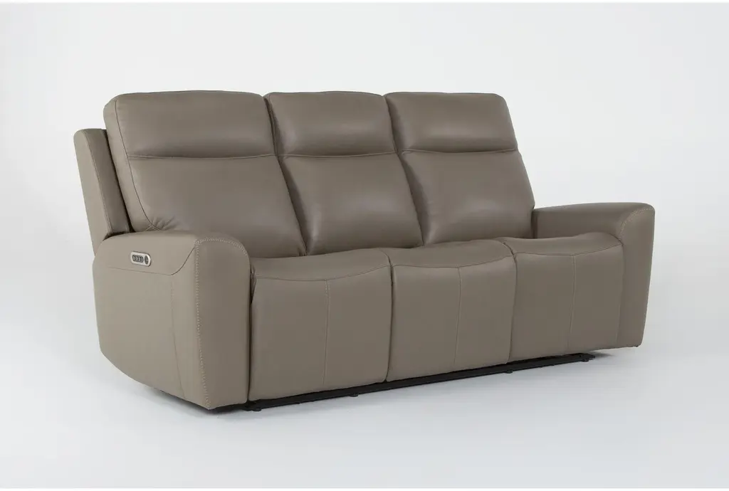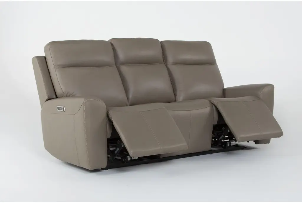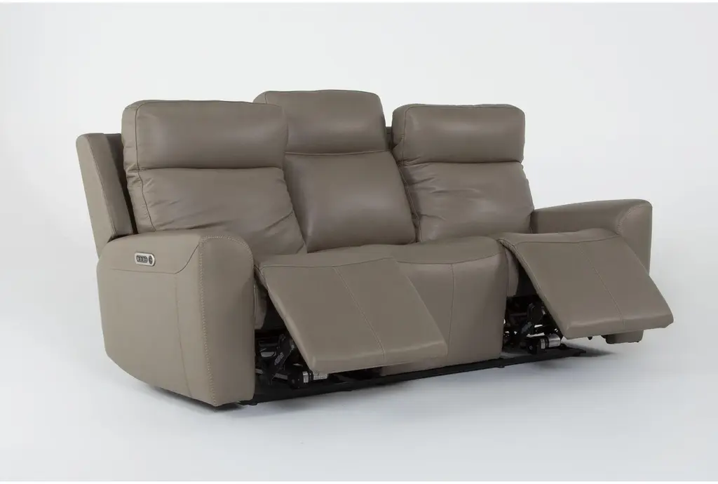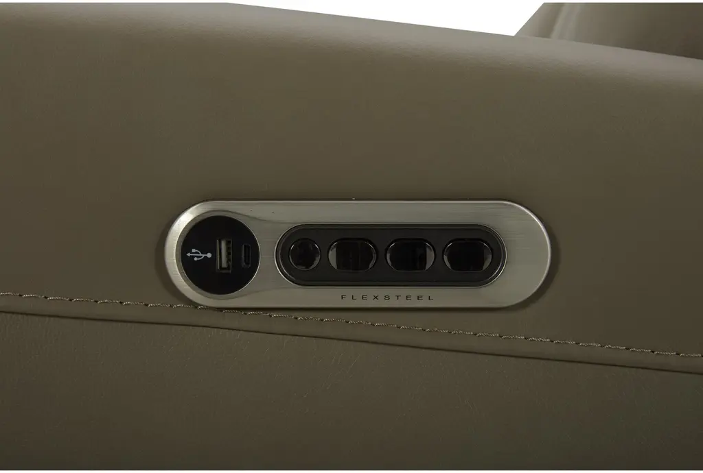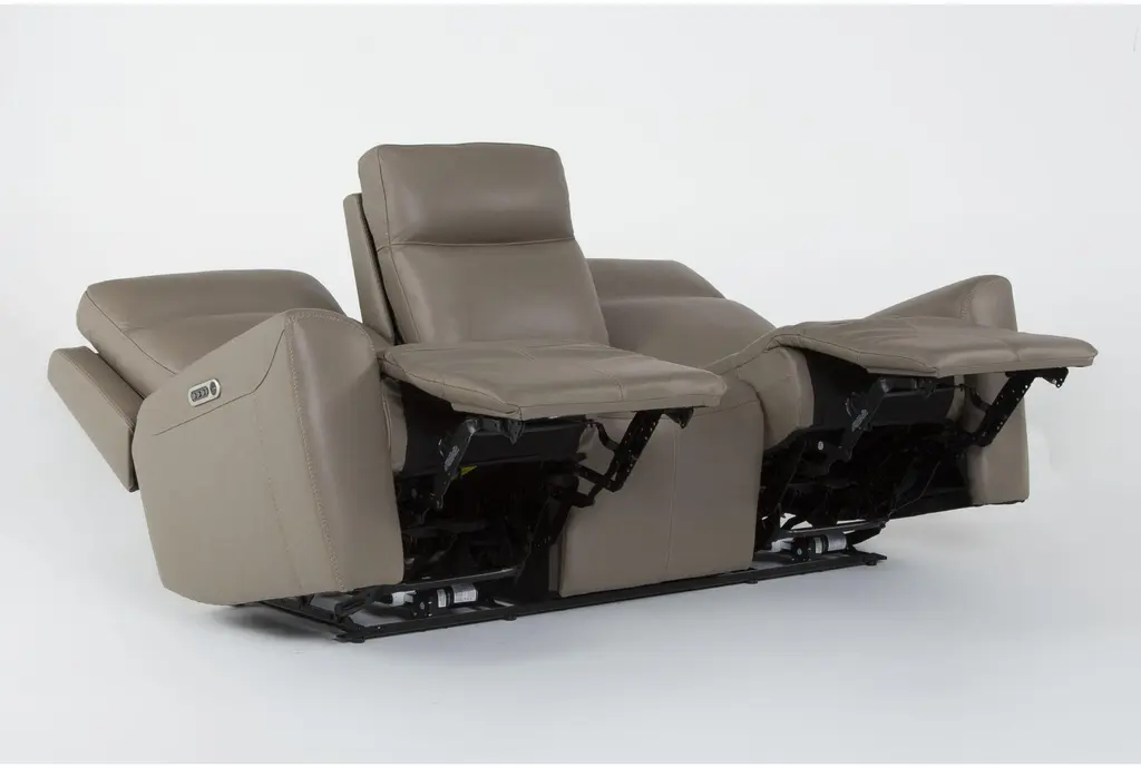 Samuel Taupe Leather 86" Flexsteel Power Zero Gravity Reclining Sofa With Power Headrest Power Lumbar Drop Down Tray Wireless Charging & Usb