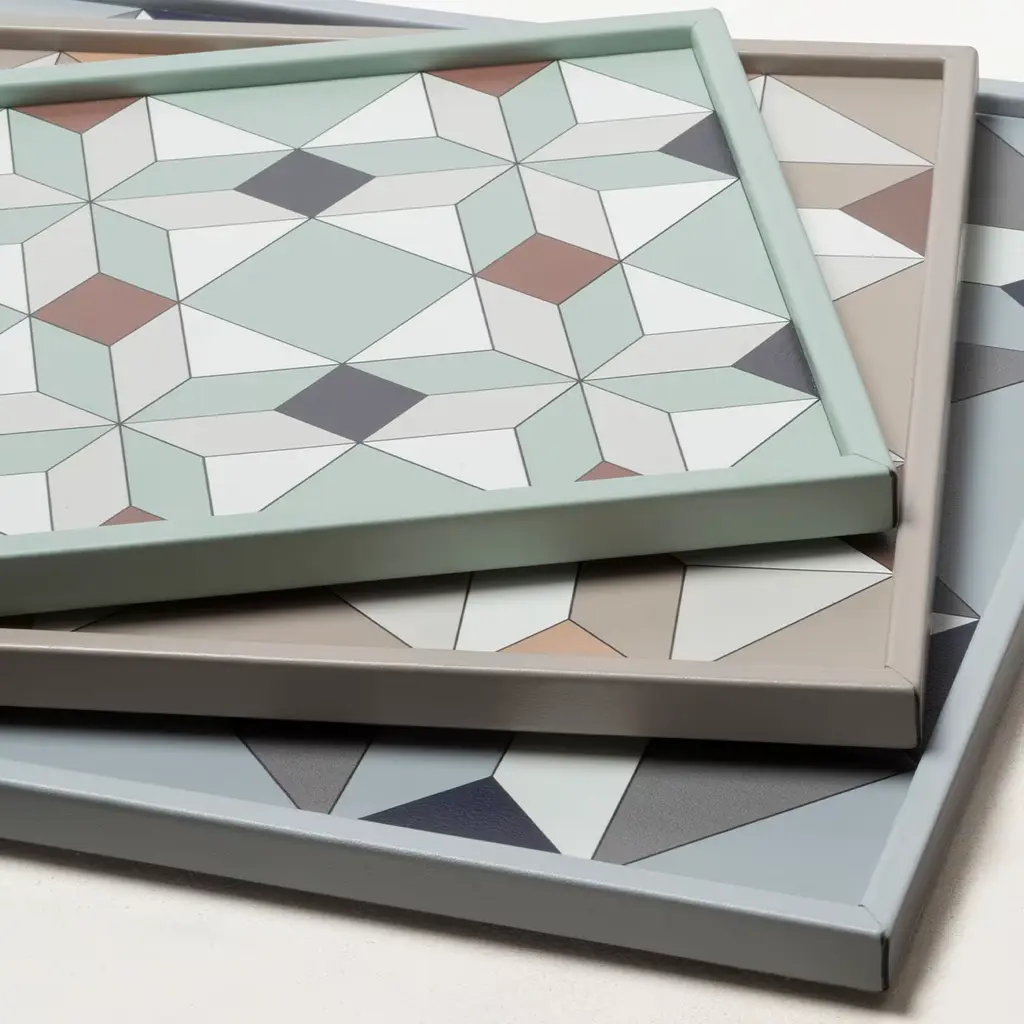 With patterns that take inspiration from characterizing details found in suggestive corners of Venice, these printed leather trays are a celebration of the iconic city on water. Featuring different sizes and shapes, the Venezia collection combines historic legacy with modernity, and is the expression of the artistic and cultural vivacity that marks the city’s history. Geometric illusory texture inspired by the floor of a hall in the Correr Museum in Venice. Only available as shown.