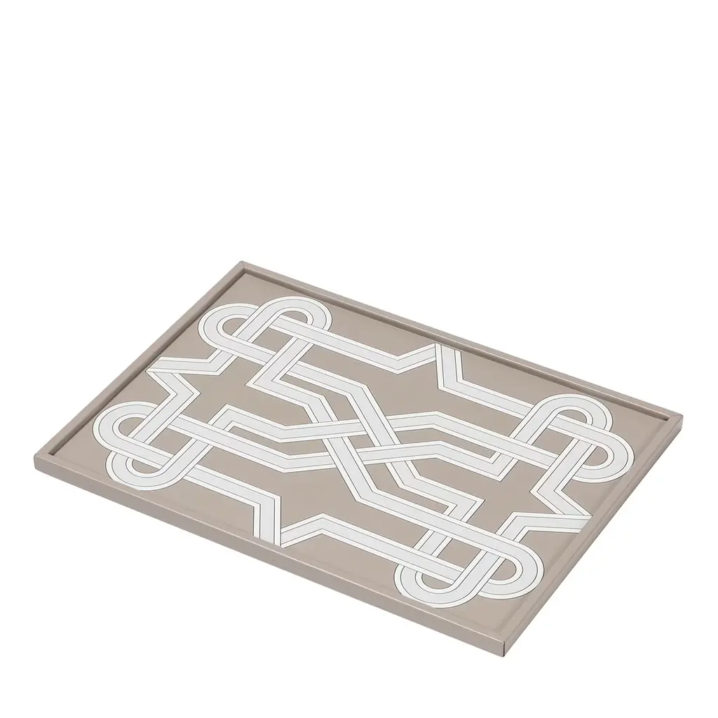 With patterns that take inspiration from details found in suggestive corners of Venice, these printed leather trays are a celebration of the iconic city on water. Featuring different sizes and shapes, the Venezia collection combines historic legacy with modernity and is the expression of the artistic and cultural vivacity that marks the city’s history. Geometric illusory texture inspired by the or of a hall in the Correr Museum in Venice. Only available as shown.