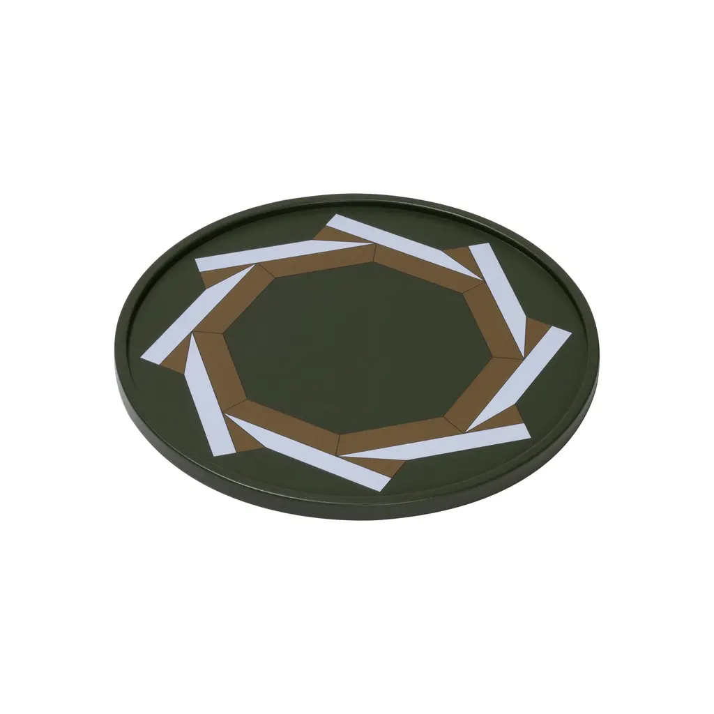 Capture the historic artistry of Venice with the San Marco Round Tray No.1 from Giobagnara. Expertly handcrafted in Italy, its wood structure is meticulously wrapped in fine leather, creating a seamless and luxurious feel. The surface features an intricate geometric pattern inspired by a decorative detail from the iconic mosaic floors of the Basilica di San Marco. This stunning fusion of history and modern craftsmanship is perfect for serving or as a captivating centerpiece. Highlights: