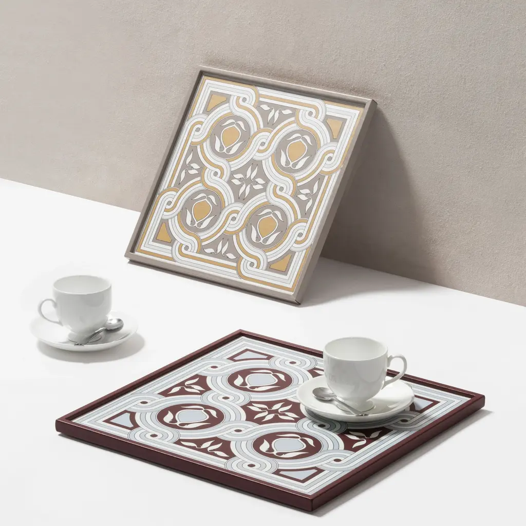The San Marco Square Tray No.1 from Giobagnara is a stunning piece of functional art inspired by Venetian architecture. Expertly crafted in Italy, its wood structure is meticulously covered in fine leather, featuring a striking graphic pattern drawn from the iconic facade of the Basilica di San Marco. Blending historical reverence with modern esthetics, this tray brings a touch of architectural history and refined luxury to any surface, perfect for serving or as a decorative centerpiece. Highlights: