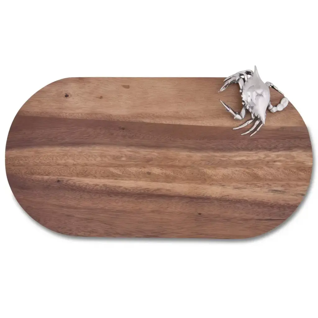Nip at your guests until they try whatever meal you display on Arthur Court's Crab Olbong Tray. A large crab dangles its legs off the side of this dish as it seemingly tries to crawl back on and steal any leftovers. Distinct lines and sharp points within the crustacean's design contrast beautifully with the sleek interior of this handmade, aluminum tray.